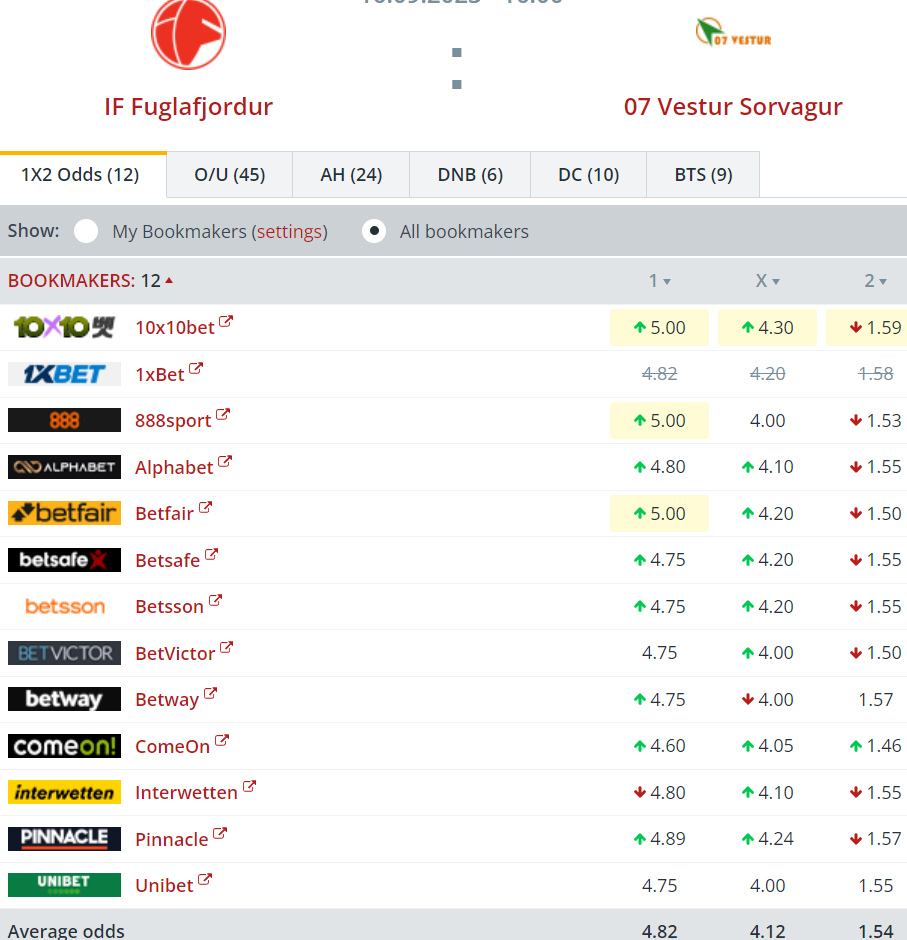 12 altjóða veddingarfyritøkur, ið lata odds upp á dystin hava 07 Vestur sum favoritt til at vinna dystin.