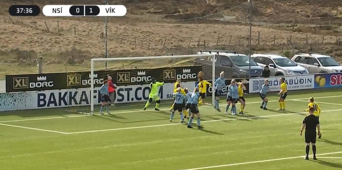 Tað restaðu sjey minuttir, tá ið Jensa Tórolvsdóttir javnaði til 2-2, og tað vóru farnir tveir minuttir út um vanligu leiktíðina, tá ið Víkingur skoraði sigursmálið. Í tí støðuni var NSÍ málverjin ikki so heppin. Málskjútti var Rakul Sørensen. Hon er 15 ára gomul, og hetta fyrsta málið hjá henni á besta liðnum hjá Víkingi. Í fjør skoraði hon eitt mál á besta liðnum hjá ÍVB.