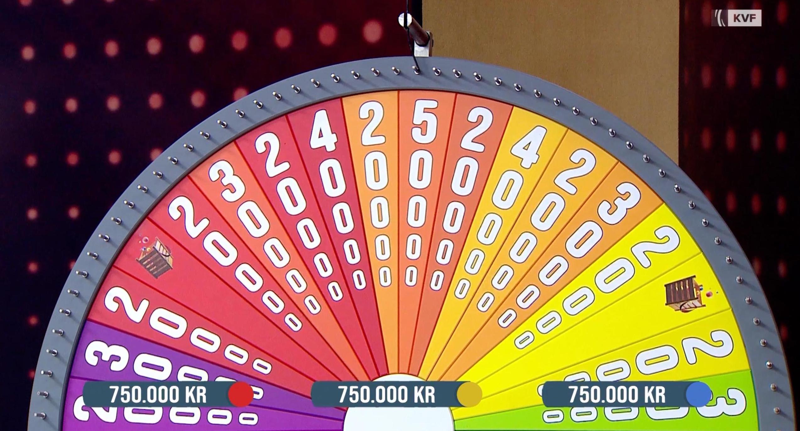 Í triðja og seinasta drátti steðgaði hjólið á 20.000 krónum, sum eisini gjørdist vinningurin í kvøld. Vinningurin, sum eftir fyrsta spæl, var á heili 150.000 krónum, endaði soleiðis niðri á 20.000.
