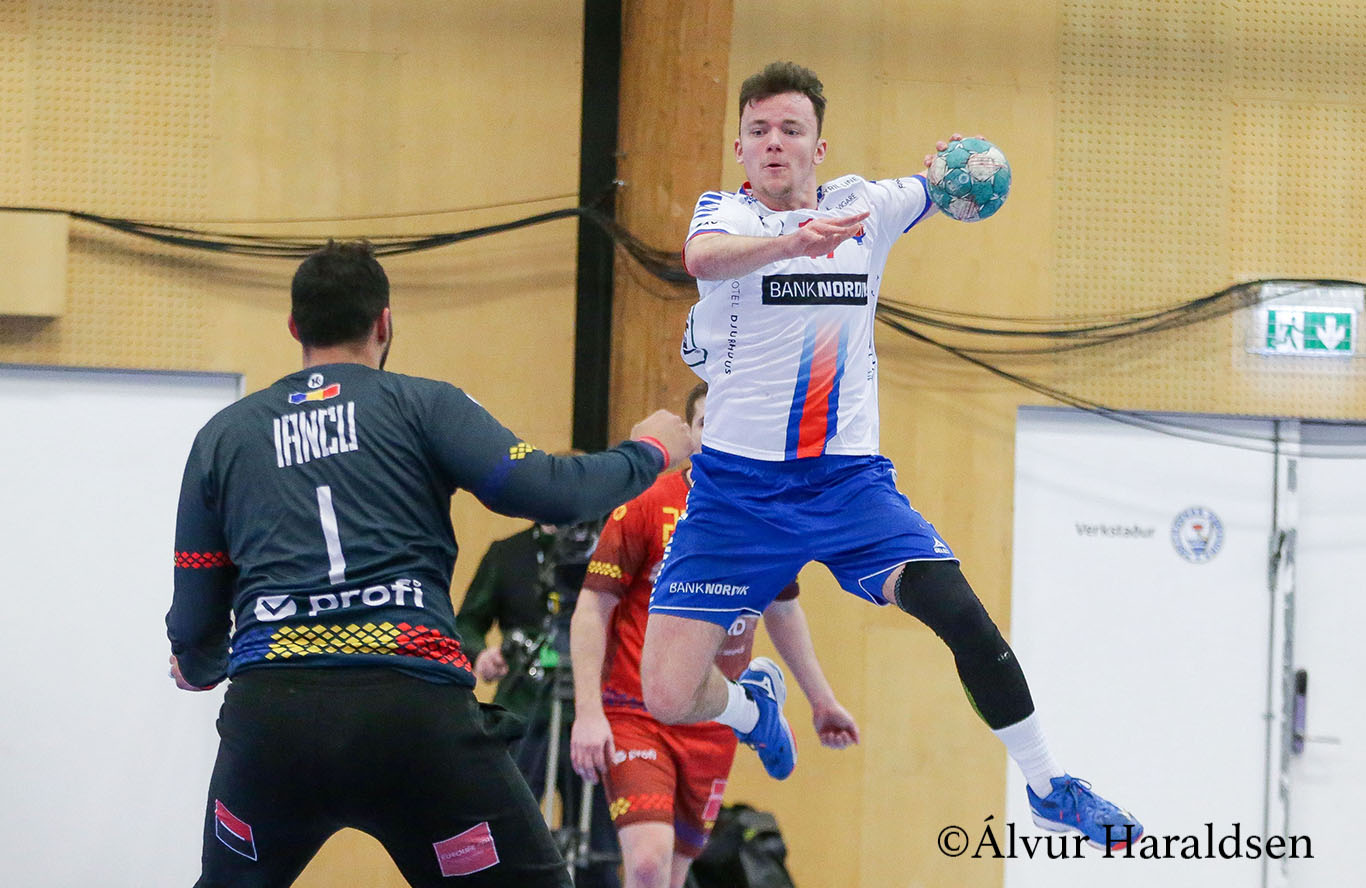 Støðan er 16-12 til Ísland.