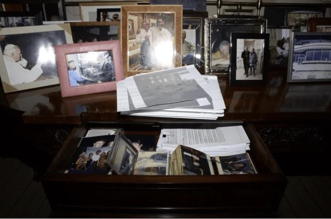Talan er um eina mynd av opnari skuffu, har fleiri fotomyndir liggja. Á eini av myndunum sæst Trump lið um lið við konu síni Melaniu Trump, Epstein og fyrrverandi unnustu og samstarvsfelaga í mong ár hjá Epstein, Ghislaine Maxwell.