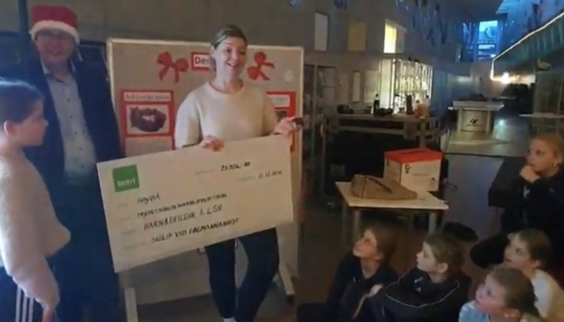 Rúna takkaði mangar ferðir fyri stóru gávuna og greiddi frá, at á barnadeildini ætla tey m.a. at brúka peningin til at keypa ein rusjibana til smærru børnini.