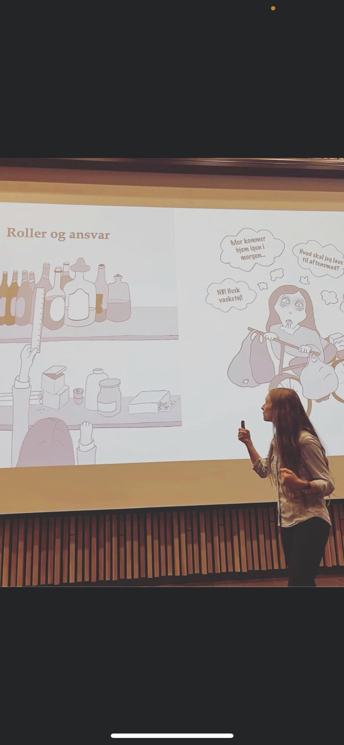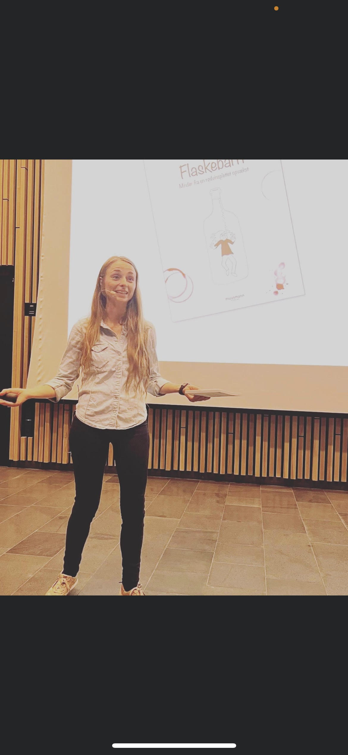 Katrine Quorning er vaksin upp vid einari mammu sum hevur rústrupulleikar, og fyrilesturin snúði seg um hvussu hetta hevur ávirkað hana og hvat ein kann gera, um man hevur rúsbundin foreldur. Katrine nýtti egnar tekningar, fyri at vísa á tær kenslur eitt barn við rúsbundnum foreldrum hevur.