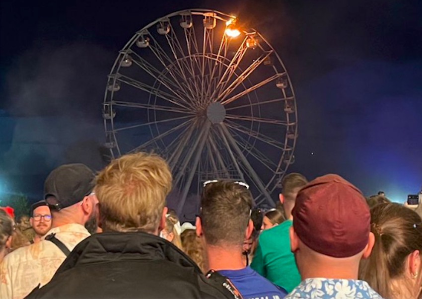 Týski rapparin, Ski Aggu, var á pallinum, tá eldurin kyknaði. Bild veit at siga, at rapparin sá eldin og peikaði á parísarhjólið av pallinum.