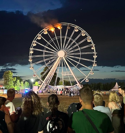 Klokkan 21.13 í kvøld byrjaði tað at brenna í einum parísarhjóli á týska festivalinum, Highfield Festival, nærindis býnum, Leipzig.