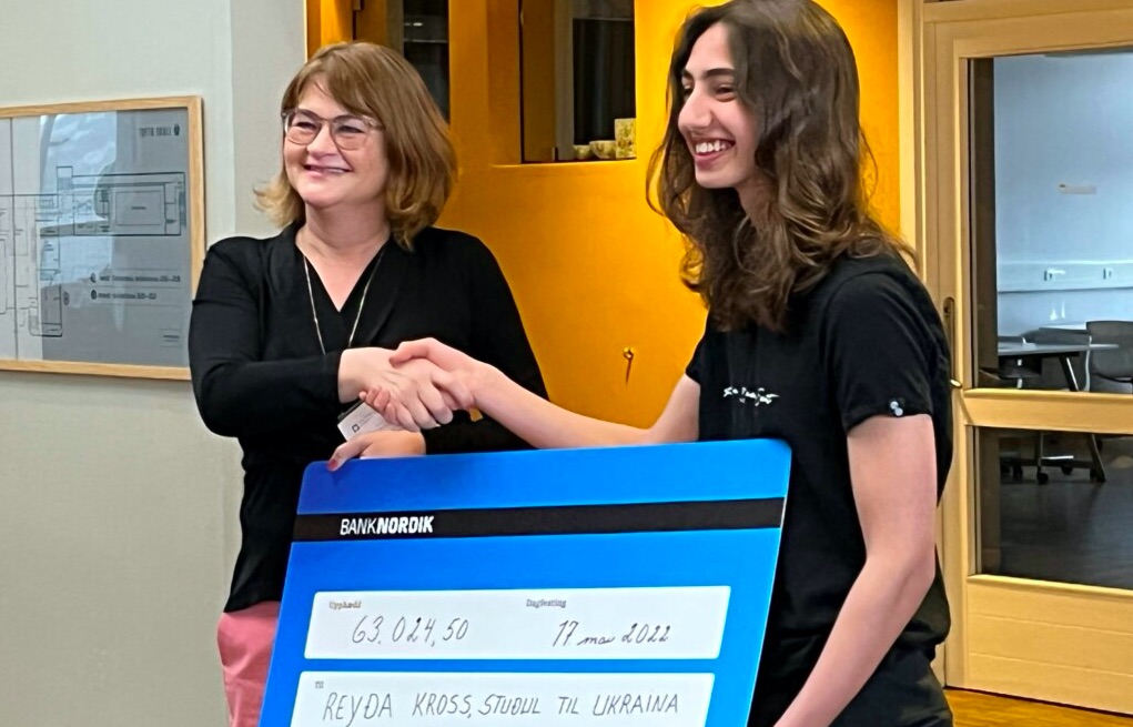 Kristianna W. Poulsen, sum umboðaði Reyða Kross, tók ímóti kekkinum og takkaði hjartaliga fyri. Hon nýtti eisini høvi at minna á, hvussu stóran týdning tað hevur, at vit øll standa saman og vilja hjálpa í neyðstøðu.