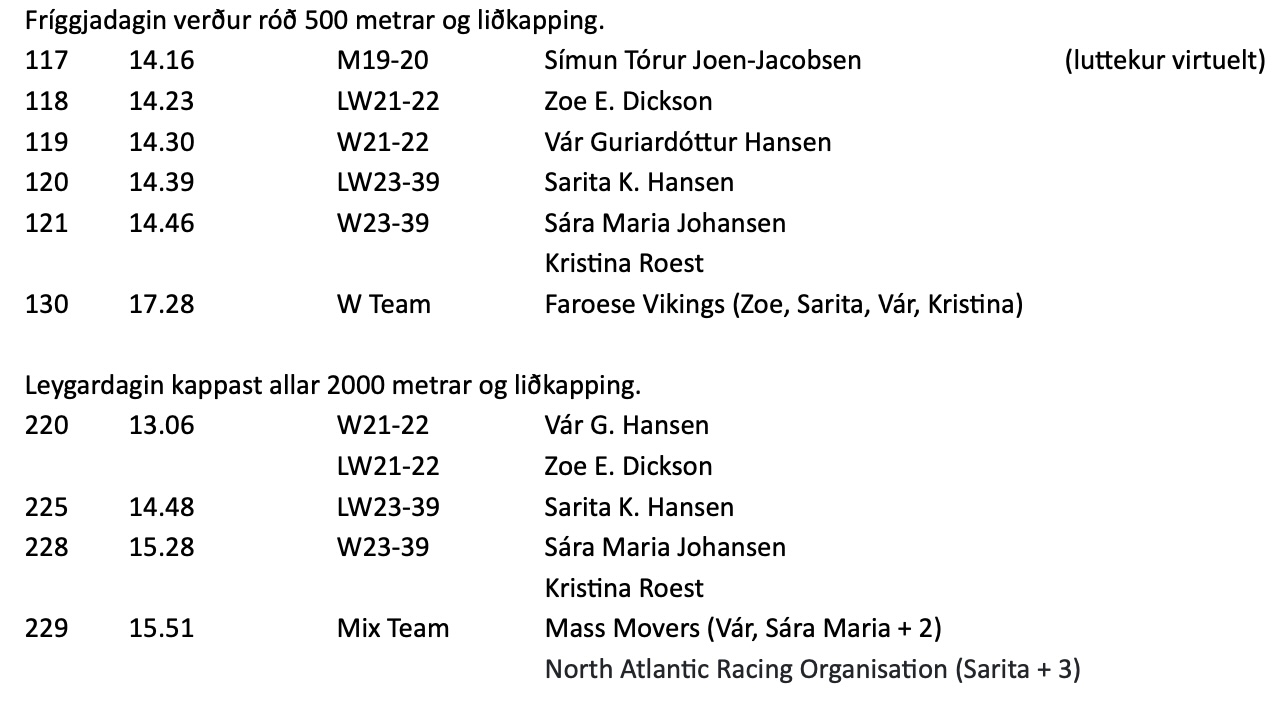 Úrslit og myndir frá kappingini kunnu síggjast á innirodur.rsf.fo, á Instagram vanganum Faroeserowing og á Facebook vanganum hjá Róðrarsamband Føroya.