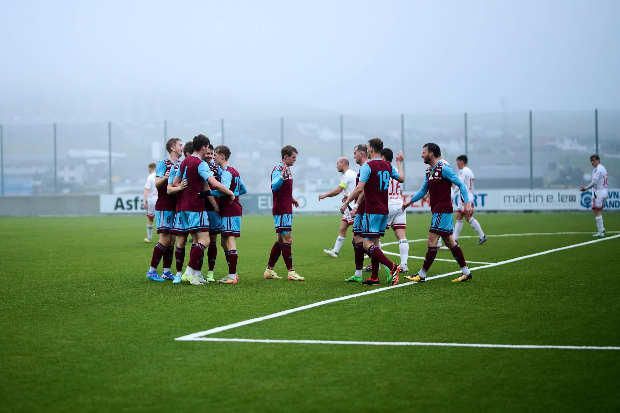 Fýra minuttir eftir steðgin tvífaldaði heimaliðið um leiðsluna. Eftir gott uppspæl í vinstru og flatt innlegg frá vongverjanum Sjúrði Henriksen var tað Ragnar Skála, sum úr stuttari fjarstøðu stýrdi bóltin í málið.