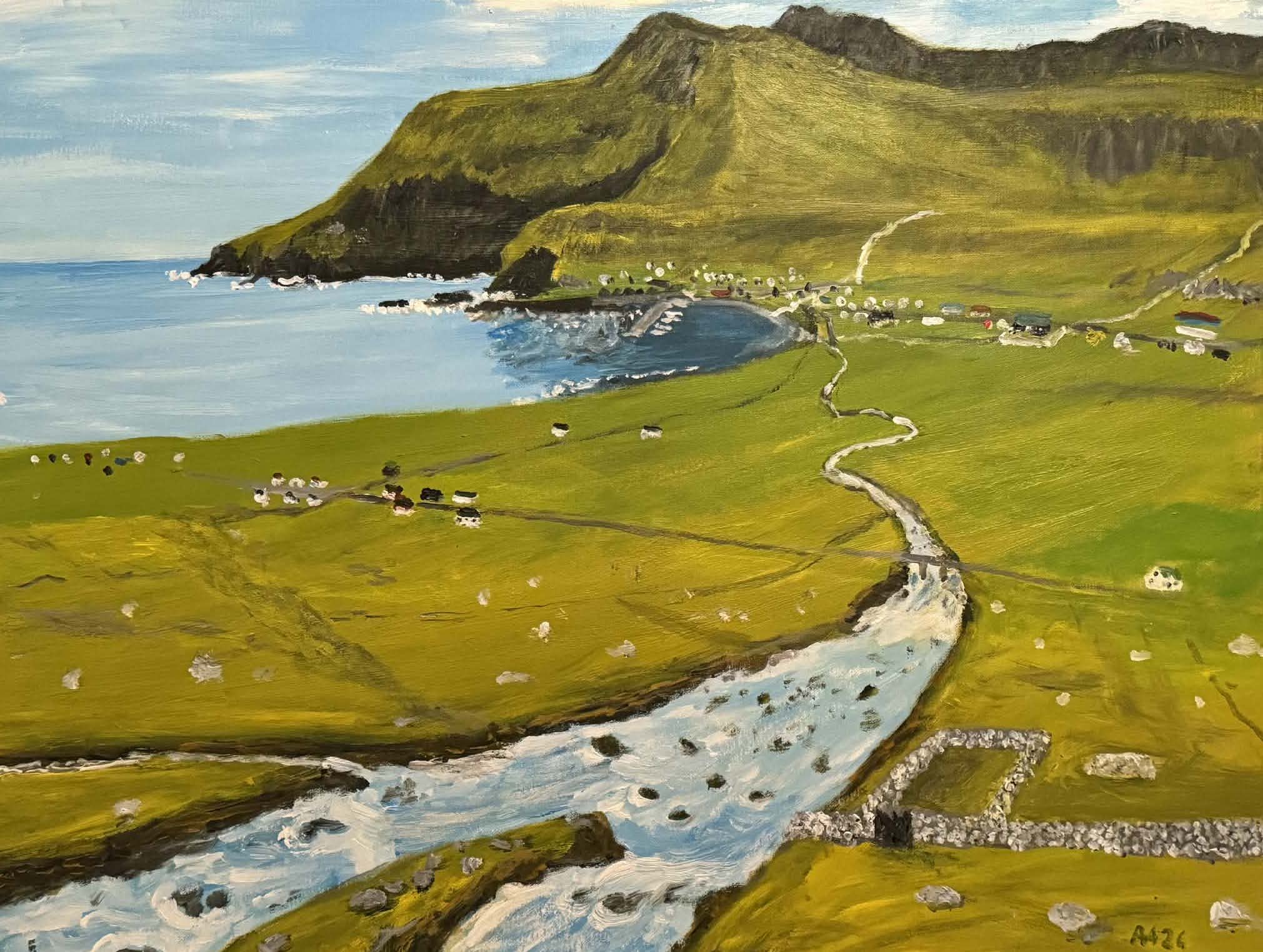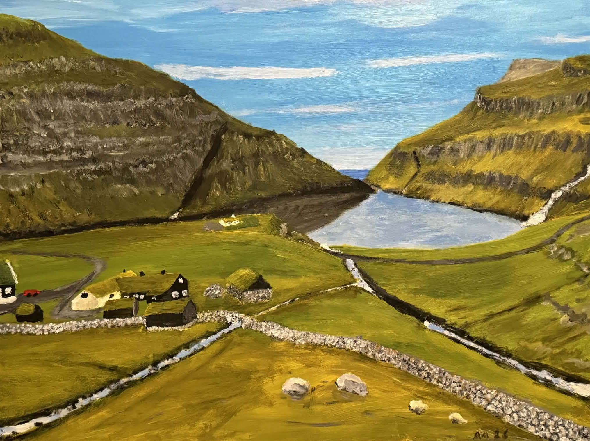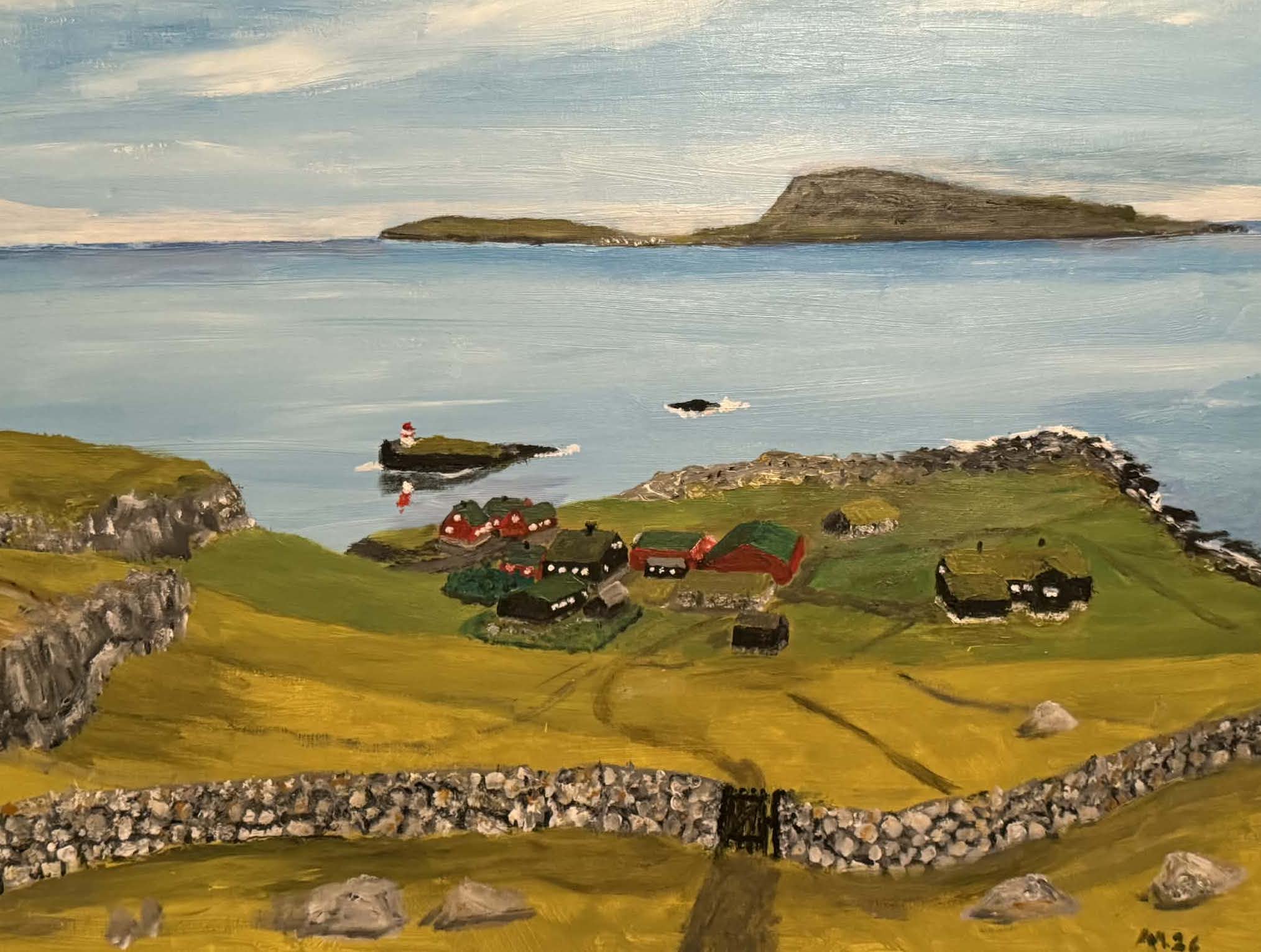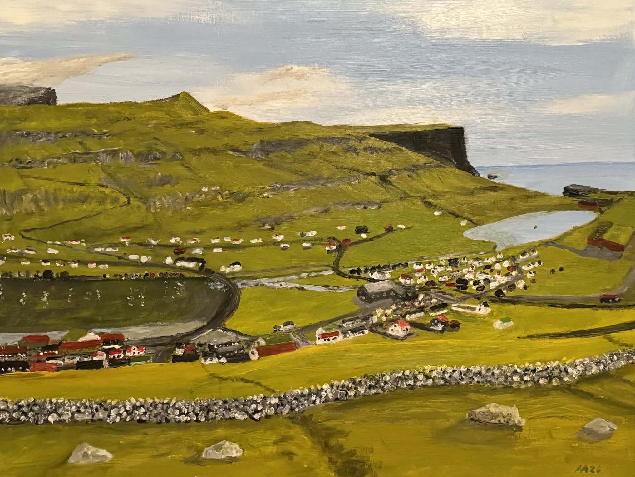 Á framsýningini eru vakrar og litríkar landslagsmyndir, sum fólk kenna seg aftur í, og her eru bygdaløg og ymisk umhvørvi úr stórslignu føroysku náttúruni.