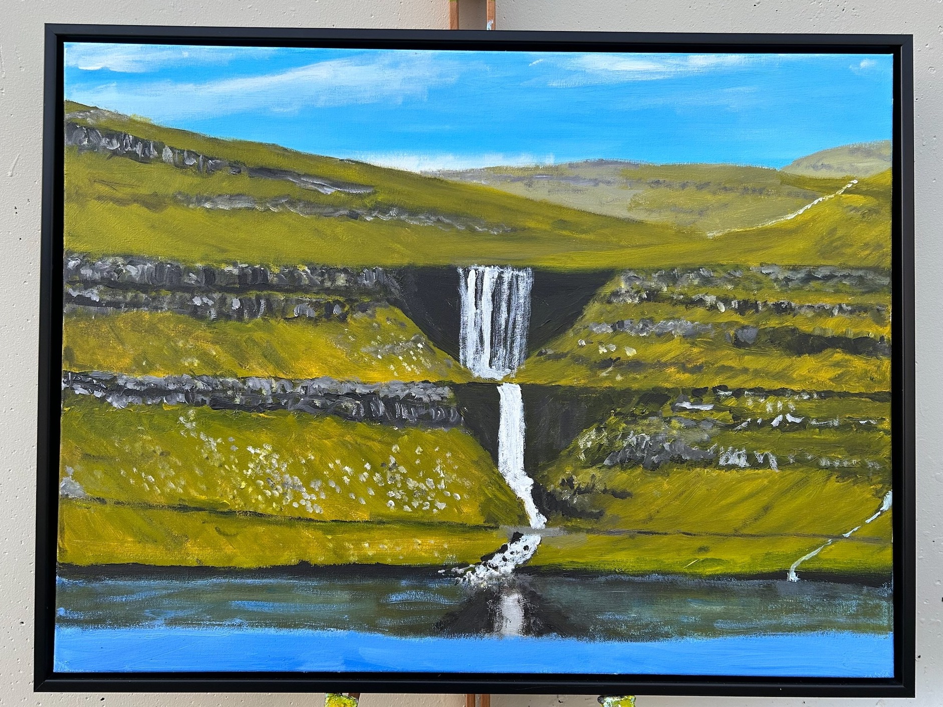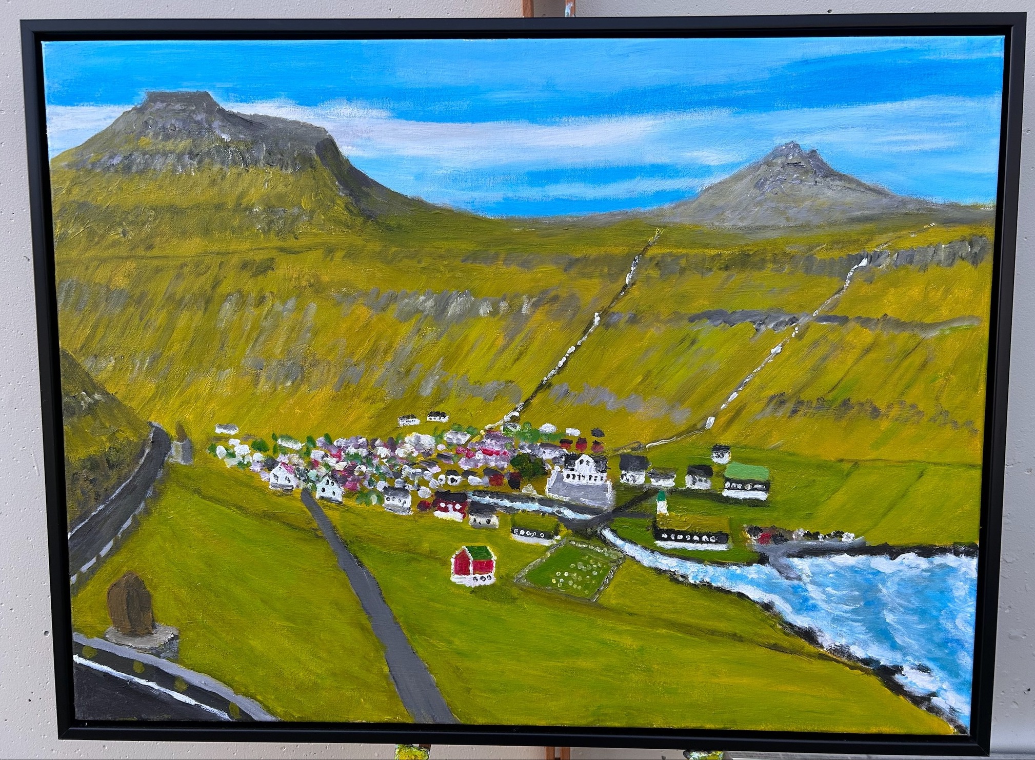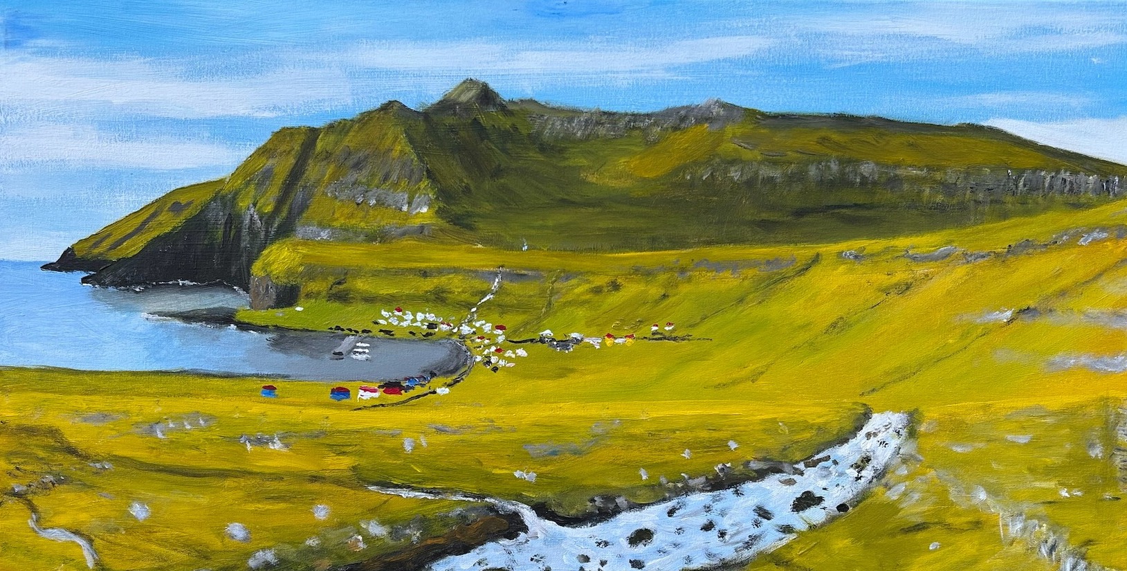 Absalon Absalonsen er kendur fyri at mála náttúrumyndir - av bygdum, bygdaløgum og landsløgum kring um í føroysku náttúruni.