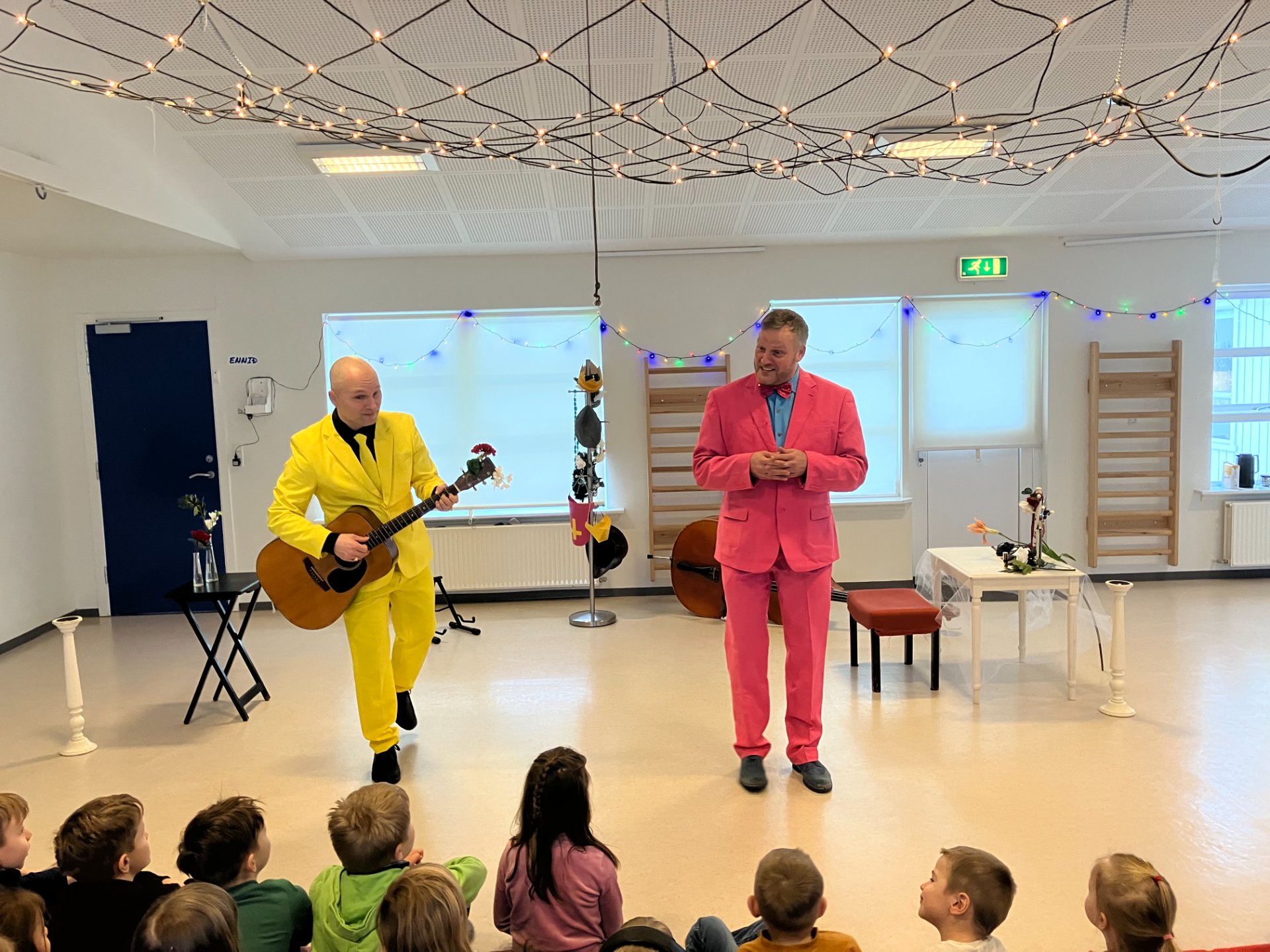 Í dag vóru Dánjal og Búi og framførdu kærleikssøguna hjá Shakespeare um Romeo og Juliu. Og sum altíð dugdu teir báðir sera væl at fanga børnini og leiða tey inn í teirra ævintýraverð og lærdu børnini at tosa "poetist". Børnini vóru sera hugtikin av leikinum og sótu pinnastill og fylgdu við. Dánjal og Búi sungu eisini teirra kendu sangir, so sum "Grækaris Grashøv", og tá sungu øll børnini hart við.