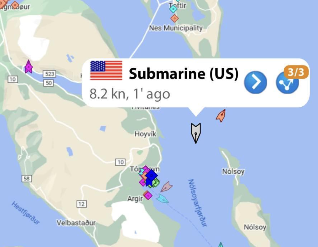 Ein amerikanskur undirvatnsbátur liggur beint nú í Nólsoyarfirði. Sambært landsstýrismanninum í uttanríkismálum Jenis av Rana er undirvatnsbáturin komin her fyri at skifta manning.