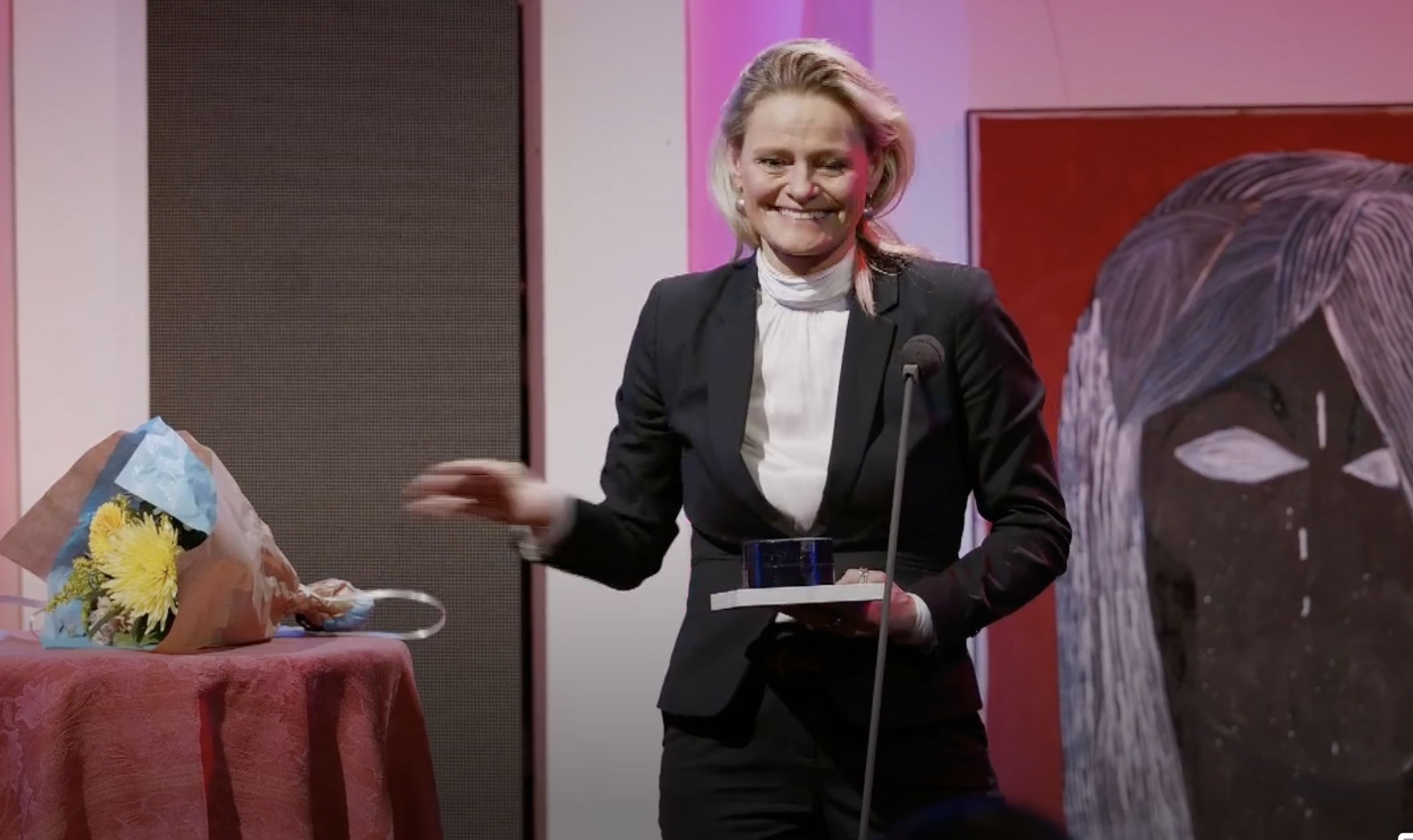 – Túsund takk fyri. Eg eri púra ovfarin av hesum heiðri. Hann hevur nógv meira at siga, enn tit halda, segði Annika Olsen.