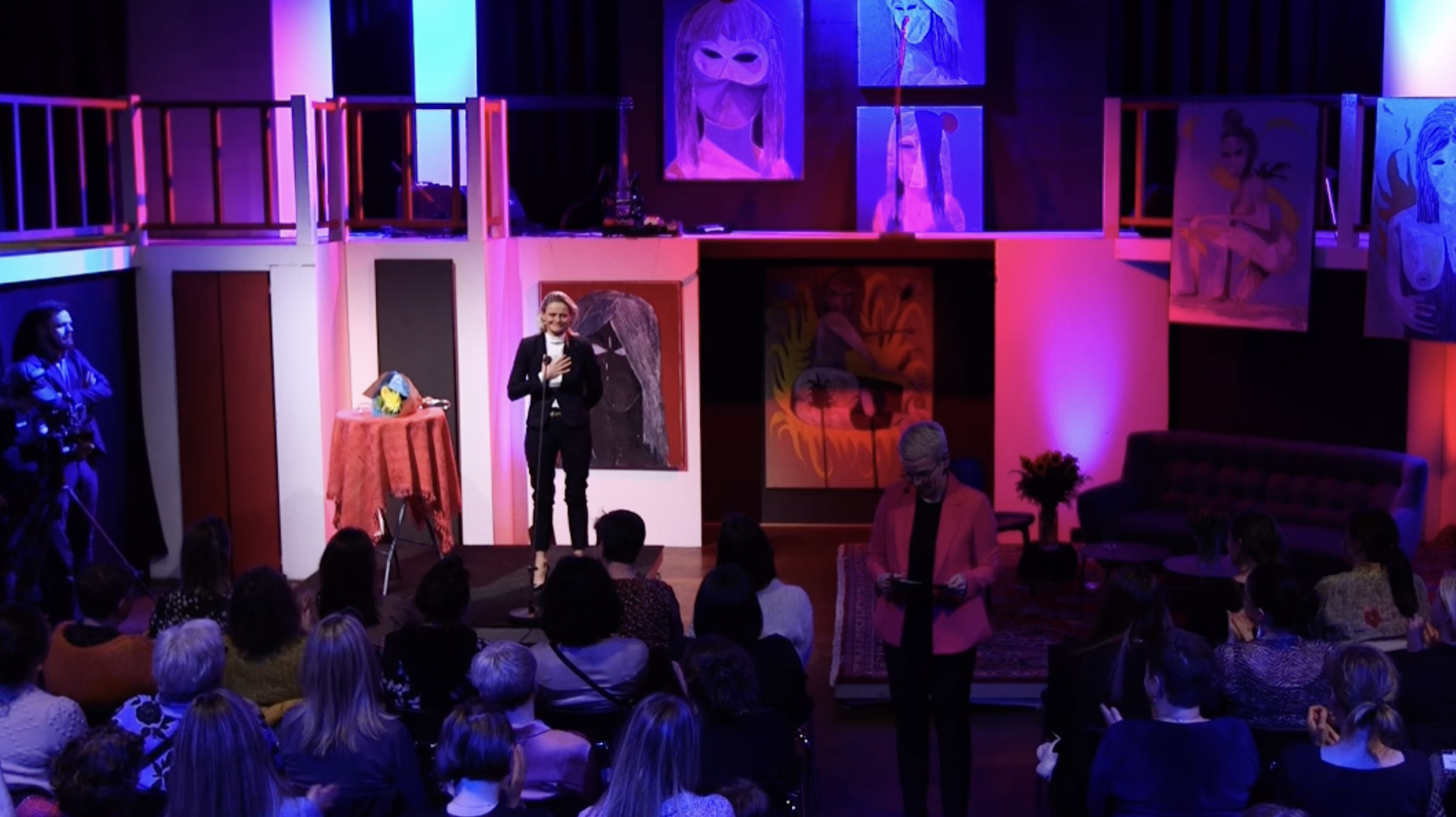 Hon kom upp á pallin og tók ímóti heiðrinum.