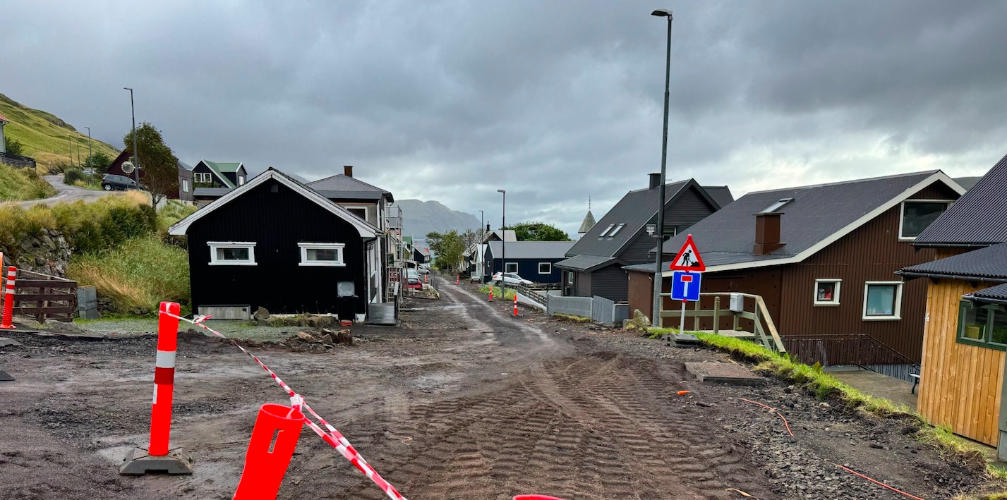 - Arbeiðið við at binda kloakkina í spillvatnsskipanina hevur gingið væl, og nú er arbeiðið liðugt á Kirkjuvegnum.