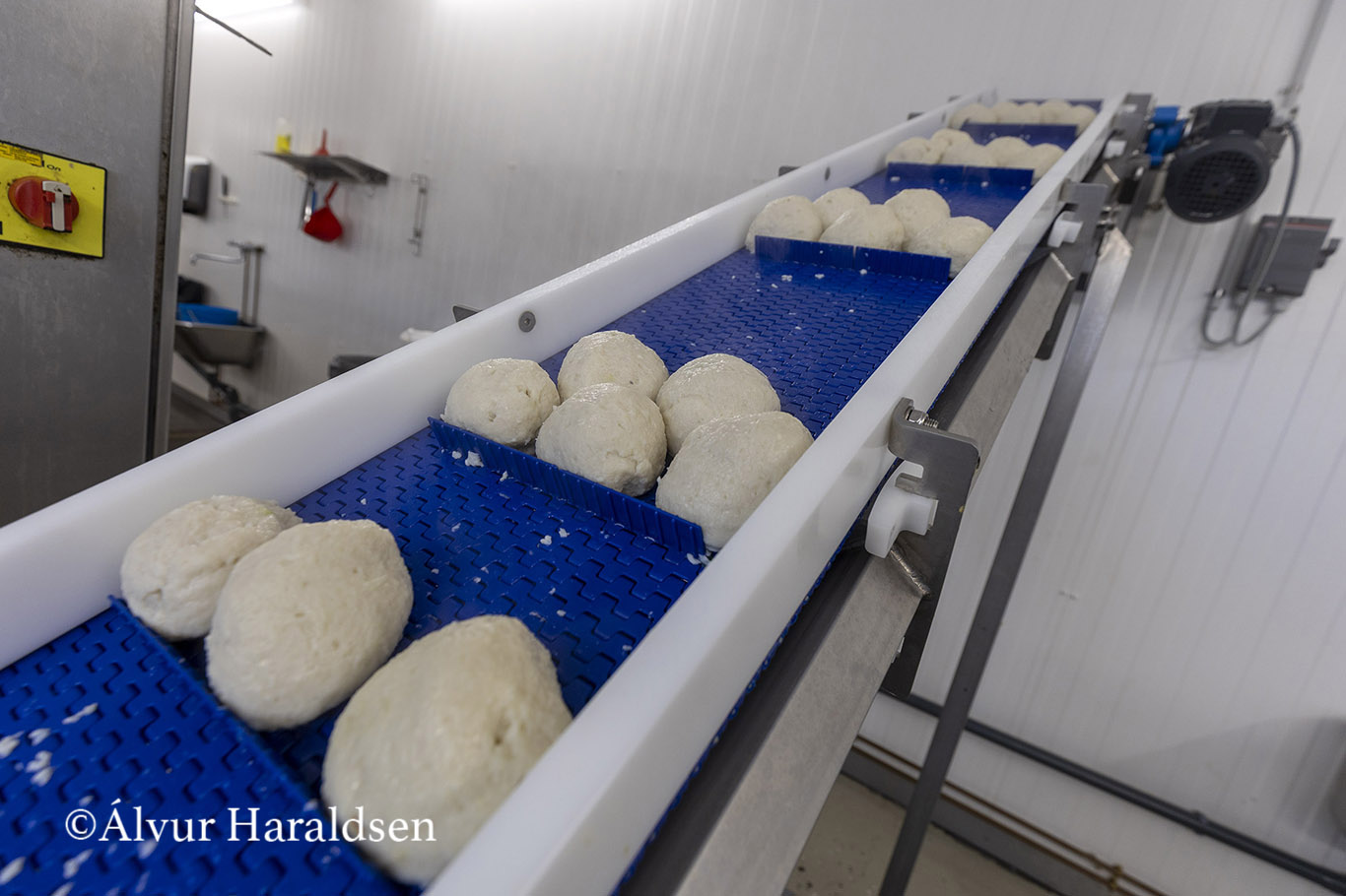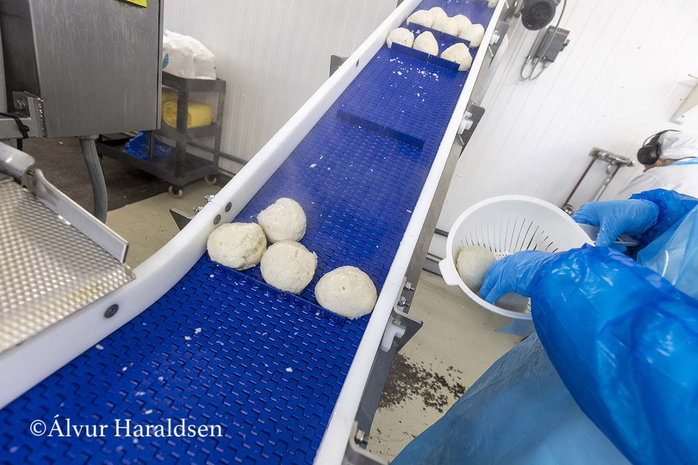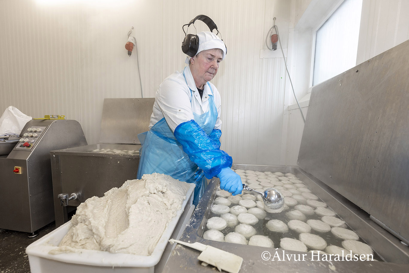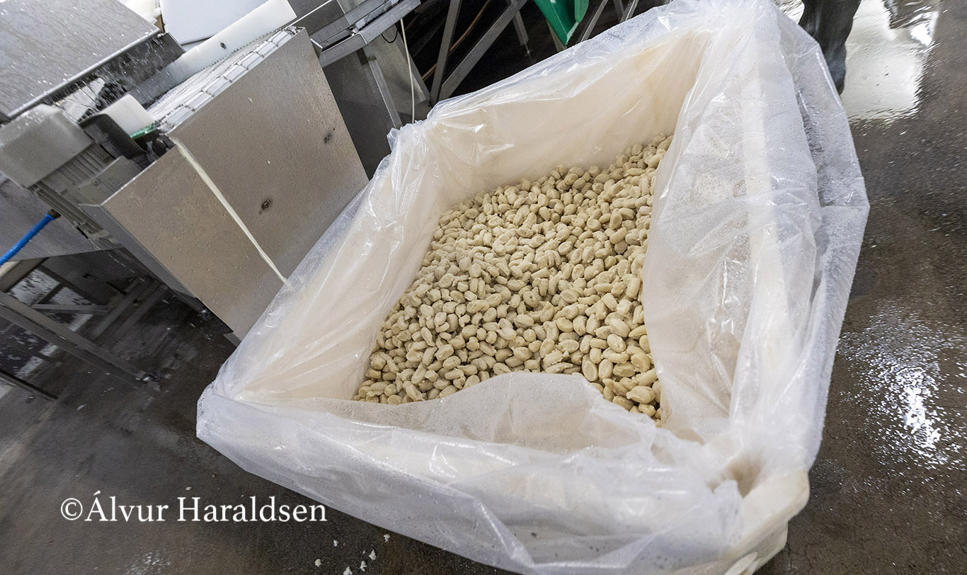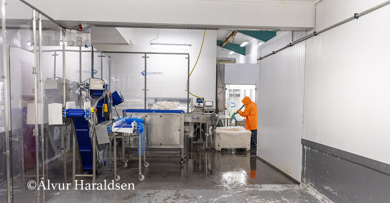 Tað tekur umleið tríggjar tímar at virka ráðfiskin til frikadellur, og tey klára at framleiða áleið 20.000 - 25.000 frikadellur í ein dag.