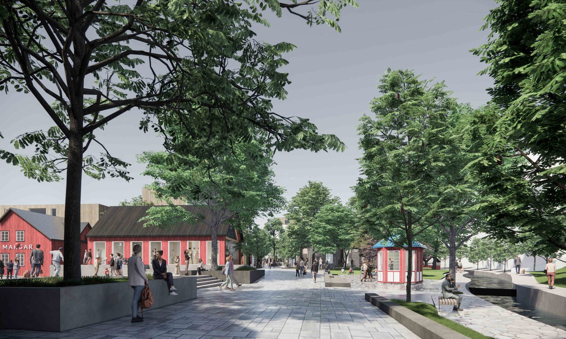 Býarlundin verður ein grøn lund við smábarnaspæliplássi og eini fleirvirknari, partvíst yvirdekkaðari pavillon til tiltøk og framsýningar.