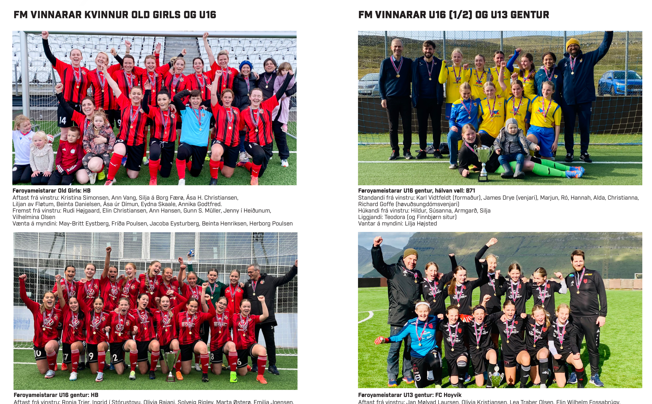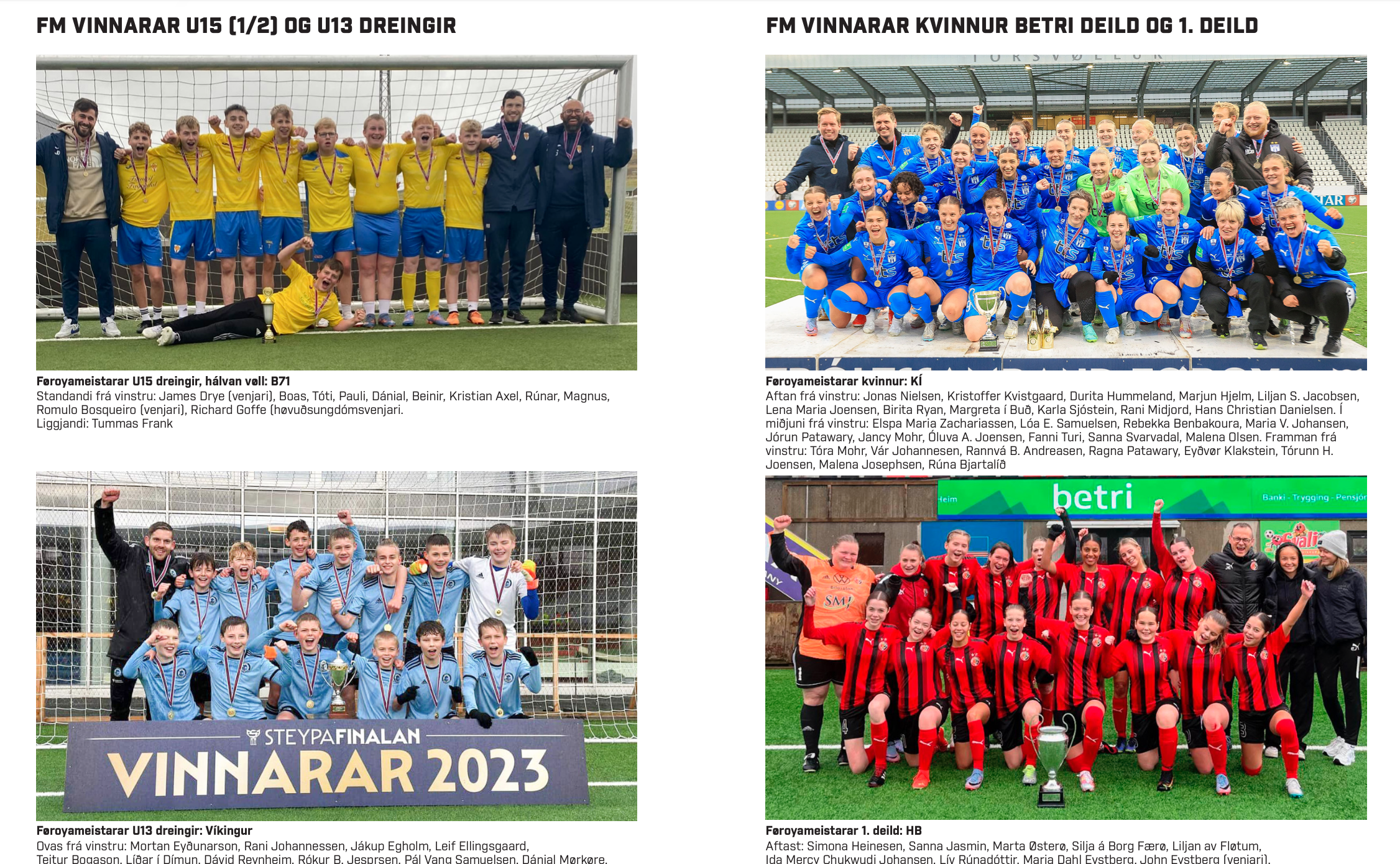 Í bókini eru eisini liðmyndir av føroyameistarum og steypavinnarum í ymisku deildunum.