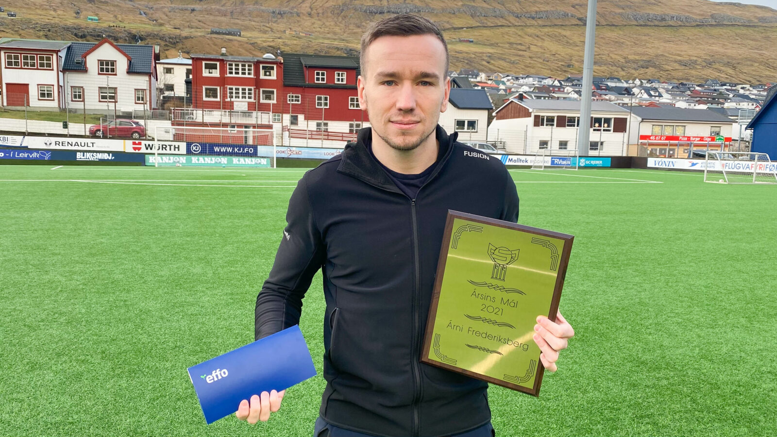 Við 60 prosentum av atkvøðunum vann Árni Frederiksberg úr KÍ heiðurin, at hava skorað ársins mál 2021 í Betri Deildini hjá monnum, boðar Fótbóltssambandið frá.