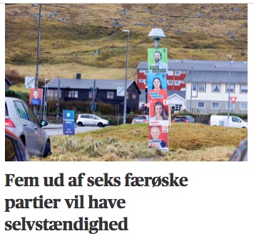 - Umframt at tað verður fólkatingsval hin 24. mars, skulu føroyingar eisini á løgtingsval hin 26. mars. Fimm av seks flokkum fara til val við ætlanini um at skipa eitt sjálvstøðugt føroyskt ríki.