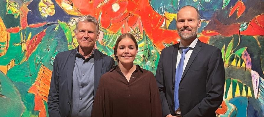 Mynd © privatmynd. Frá vinstru: Peter Garred, Ása Didriksen Apol og Dag Henrik Reikvam. Síðsti opponenturin, Thomas A. Rasmussen, var við til verjuna virtuelt frá Laos, og vantar tí á myndini.