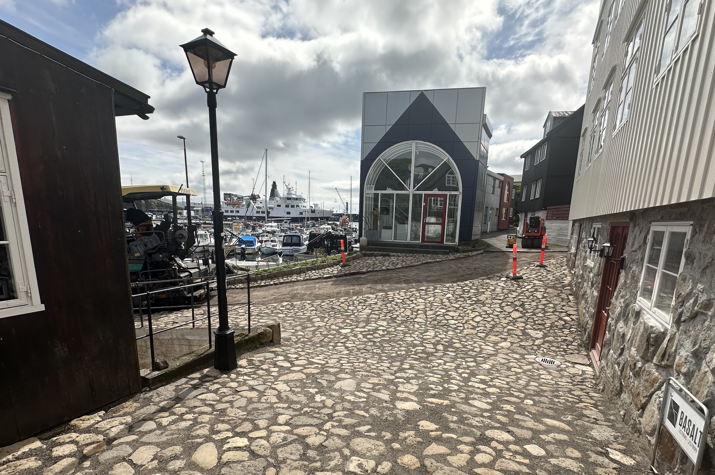 Men ígjøgnum steinsetta økið verður ein geiri asfalteraður til bilar at koyra eftir, sum skulu oman í Gongina aftan fyri gamla Sjóvinnubankan.