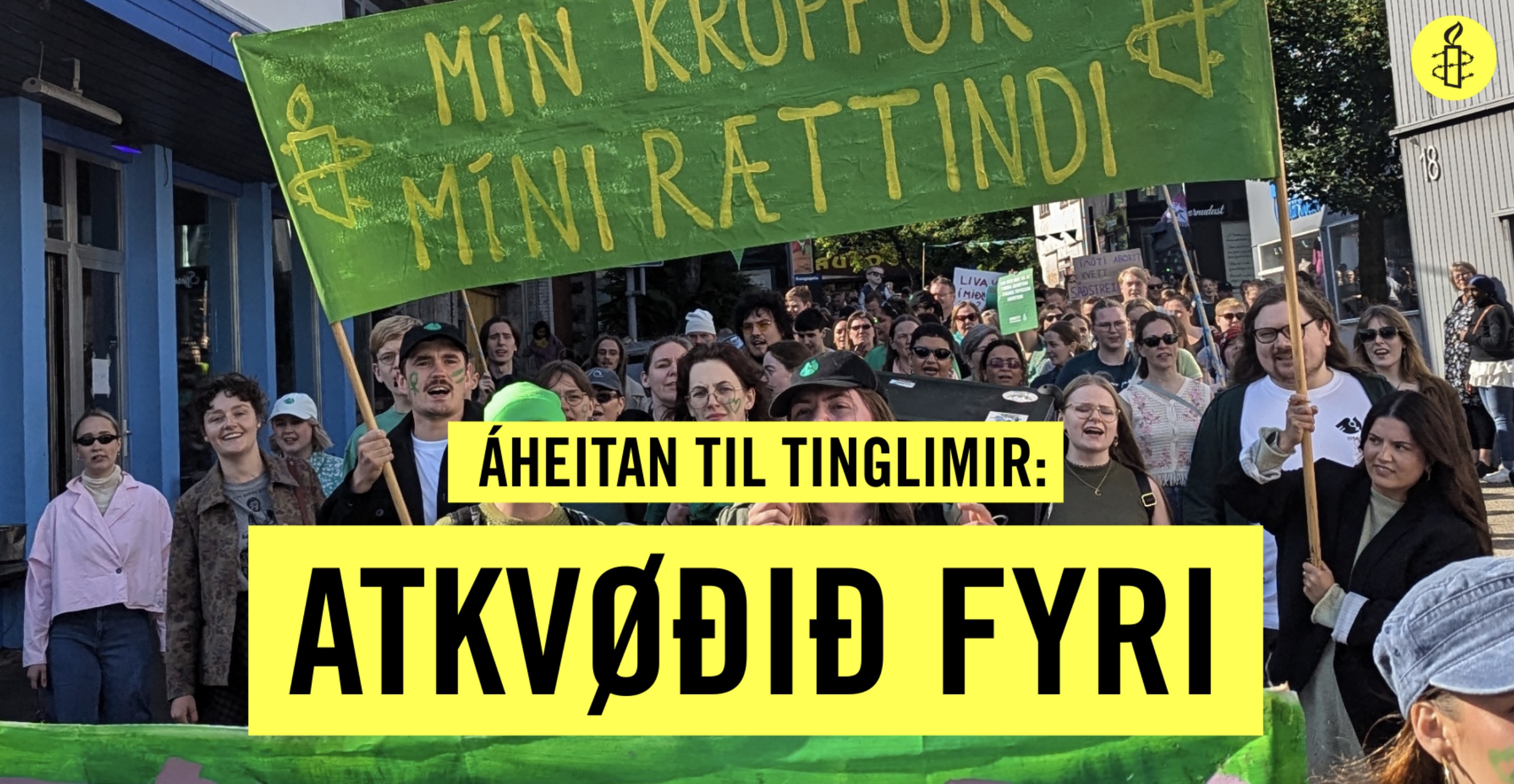 Í Amnesty Føroyum heita vit á løgtingslimir um at samtykkja uppskotið, tí tað er alneyðugt, at lóggávan á økinum verður dagførd. Verandi lóggáva livir ikki upp til altjóða mannarættindalóg, hon er ógreið og ótíðarhóskandi. Eisini setur hon kvinnur í ótryggar støður, sum í versta føri kunnu gerast vandamiklar.
