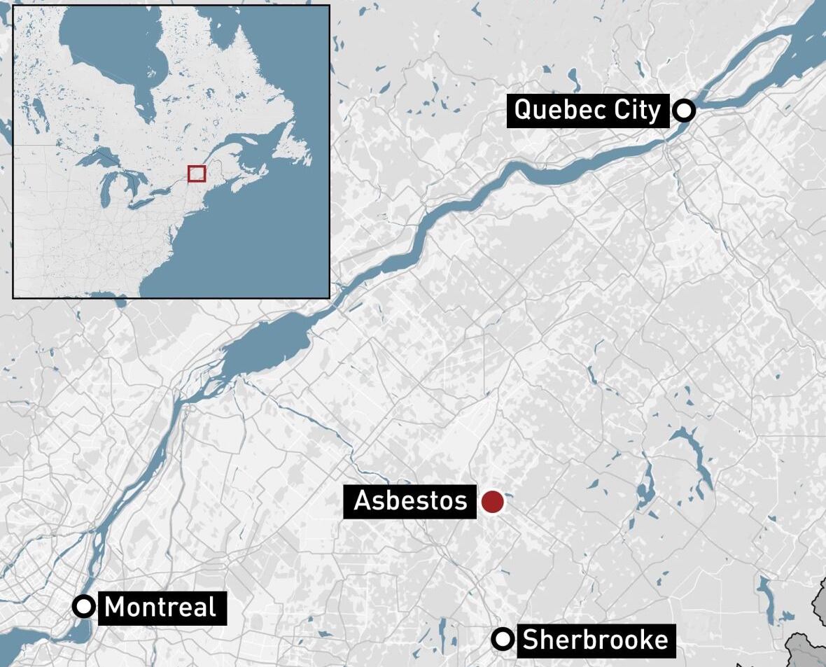 Asbestos, sum upp gjøgnum tíðirnar hevur verið kendur fyri sín asbestmálm, liggur einar 150 kilometrar eystan fyri Montreal. Síðan tað gjørdist greitt, at asbest kann vera heilsuskaðiligt og kann elva til krabbamein, eru tað fá, sum tíma at vitja býin, og áhugin fyri at gera íløgur í býnum er lítil.