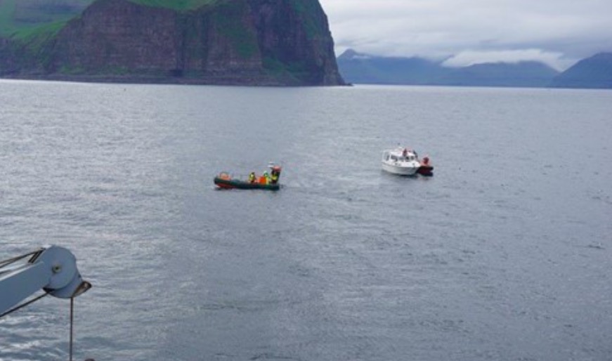 MRCC sigur, at tann neyðstaddi báturin hevði ein gummibát til átta fólk og hann varð settur á sjógv, og seks av fólkunum fóru í hann. Hinvegin var eigarin sjálvur verandi umborð á bátinum. Øll fólkini vóru eisini í bjargingarvestum.