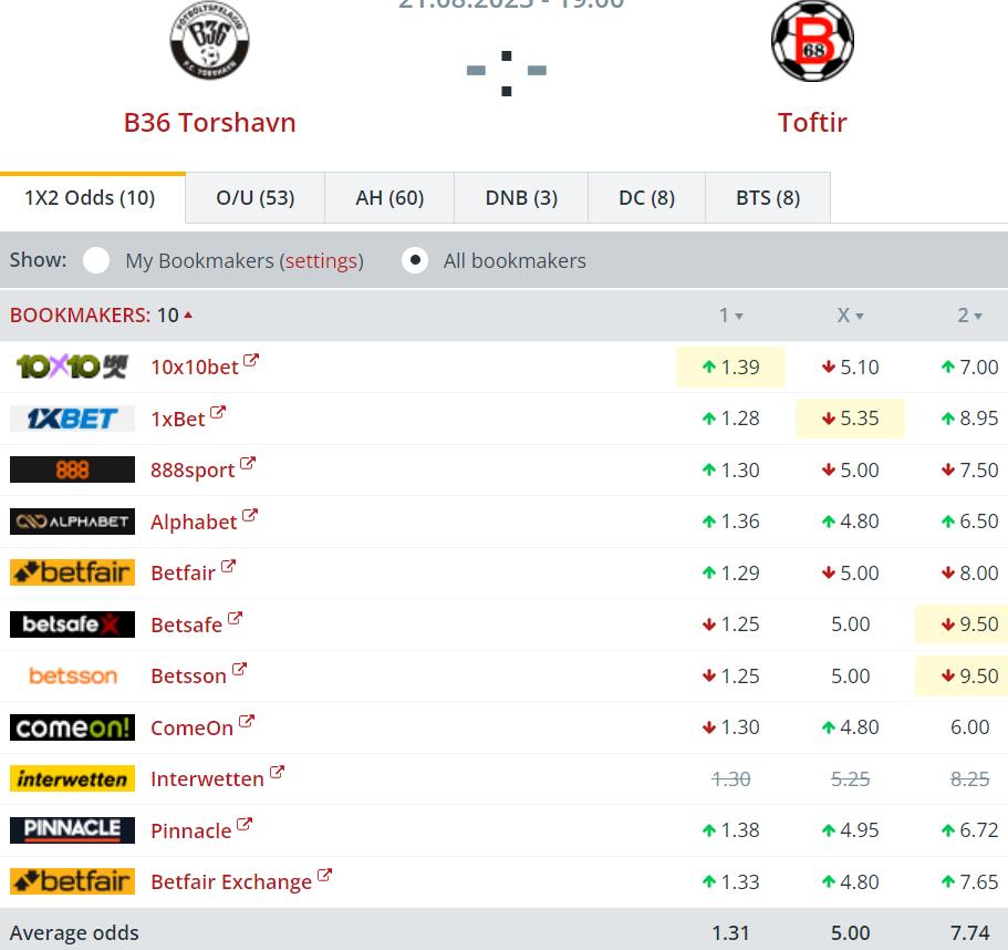 10 altjóða veddingarfyritøkur, ið lata odds upp á dystin hava B36 sum ein greiðan favoritt til at vinna dystin.