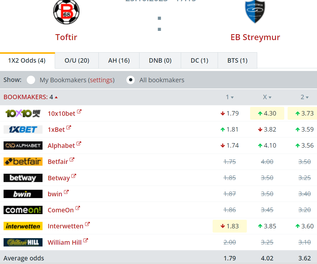 HER eru oddsini. Gev gætur, at fimm veddingarfyritøkur hava strikað veddimálið: