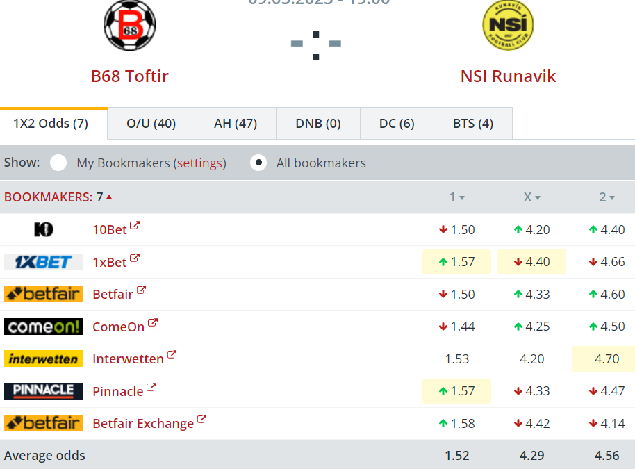 Sjey altjóða veddingarfyritøkur, ið lata odds upp á dystin hava B68 sum favoritt til at vinna dystin aftaná vanliga leiktíð.
