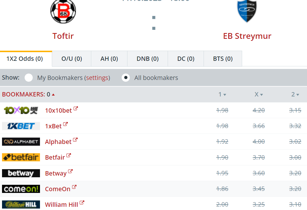 Oddsini veddingarfyritøkurnar høvdu upp á útisigur til EB/Streym aftaná vanliga leiktíð lógu millum 3,00 og 3,32.