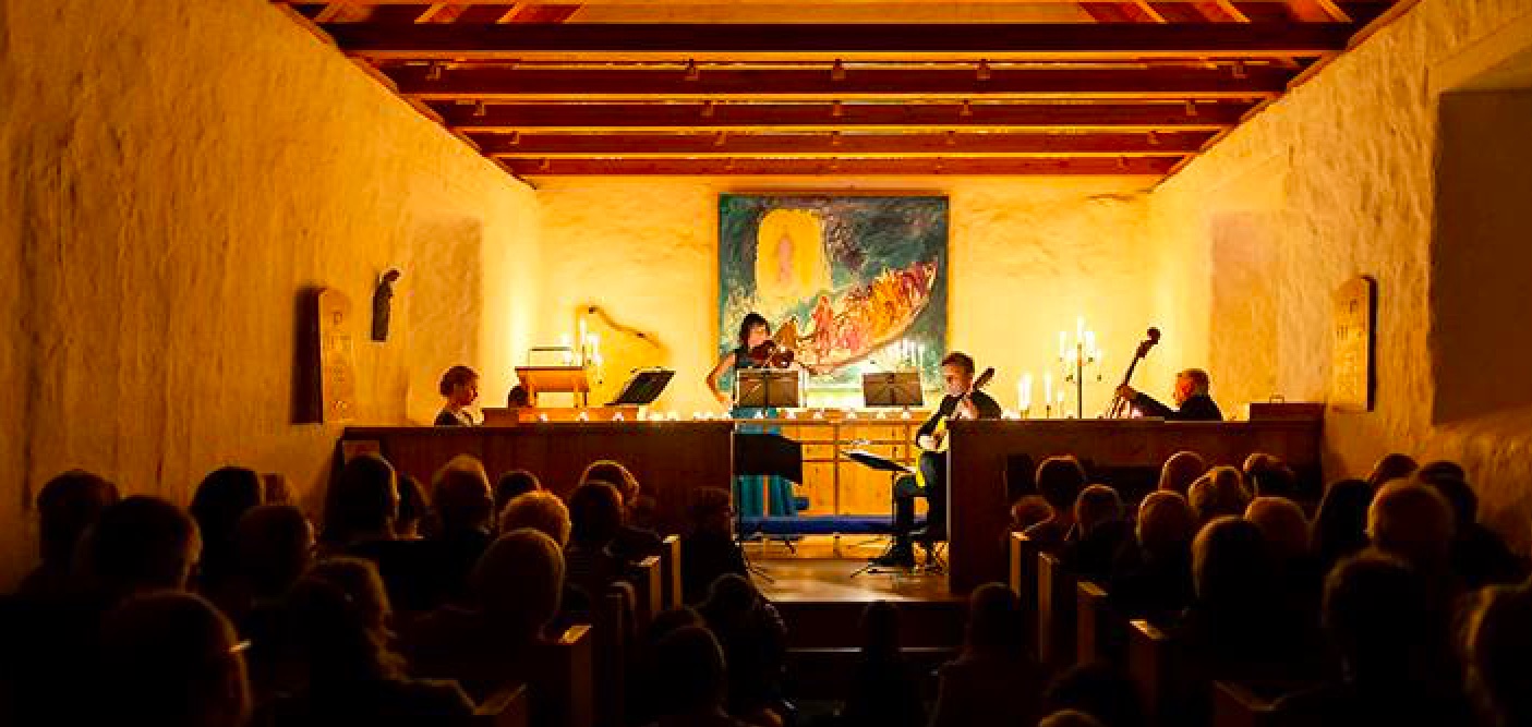 Tónleikararnir spæla undir glæmuni frá kertuljósum, meðan kirkjan og søguliga umhvørvið er prýtt við ljósmyndum, ið Carsten Macdonald Arnskov hevur gjørt.