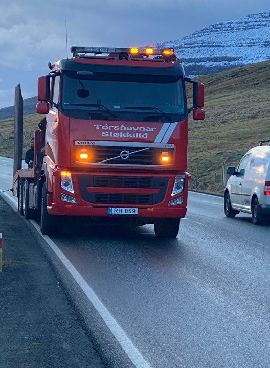 Tórshavnar sløkkilið var í morgun og tók ein bil upp, sum var farin út av vegnum við Landsfjósið norðan fyri Kollafjørð.