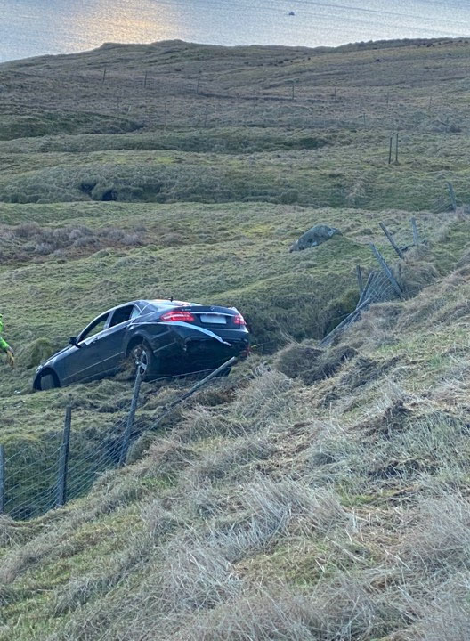 Eftir øllum at døma er bilurin komin koyrandi suðureftir, tá hann er farin útav vegnum nakrar hundrað metrar sunnan fyri Landsfjósið.