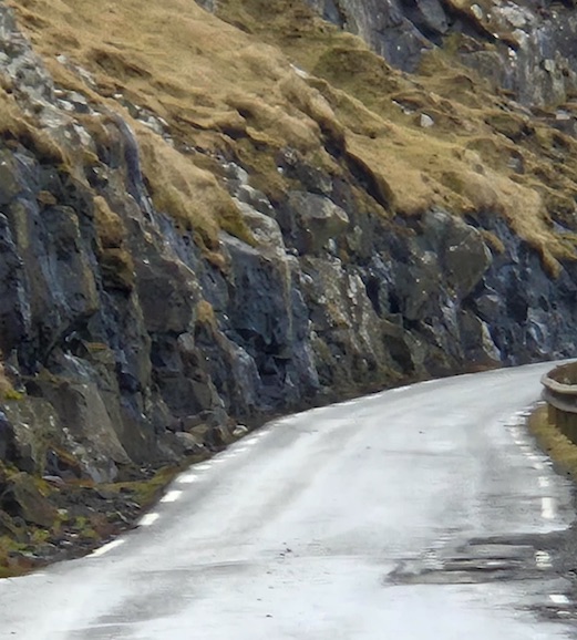 Vegurin gjøgnum Sandslíð er smalur í støðum, og tað er javnan, at grót kemur oman á vegabreytina.