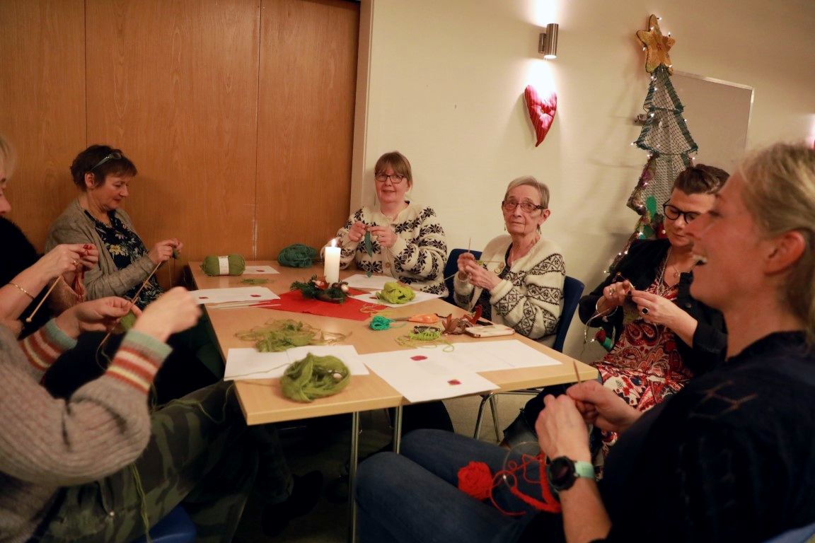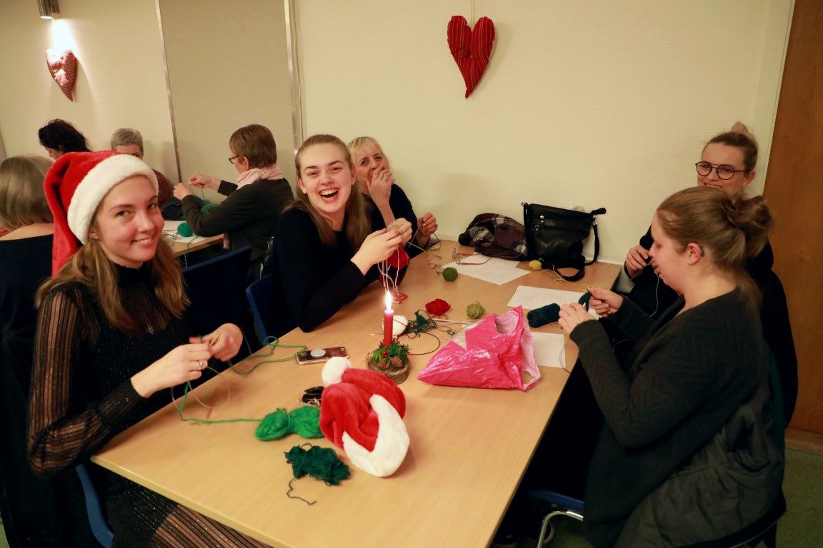 Tað er Jóhanna á Tjaldrafløtti, fyristøðukvinna, sum saman við lærarunum, Paulina Eliasen, Jenny Kastalag og Joan Sivertsen og sjálvandi eisini næmingunum, ið hava tikið stig til hesa jólaligu bindiverkstovuna, sum sanniliga eisini var væl vitjað.