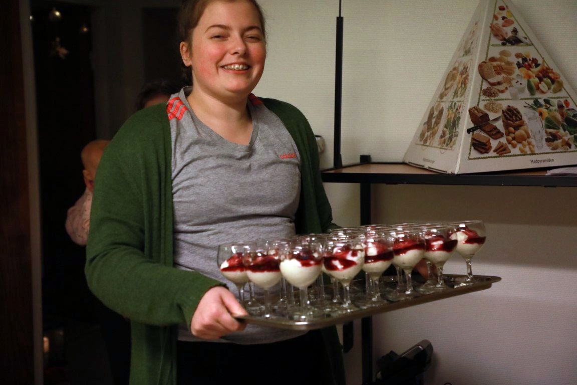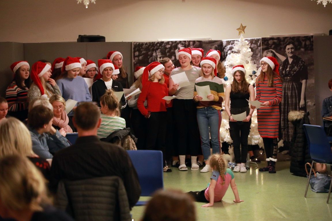 Núverandi næmingar á skúlanum, tilstundandi næmingar og gamlir næmingar saman við hópin av fólki møttu til jólahugna á skúlanum í kvøld, og dúgliga bleiv bundið og prátað.
