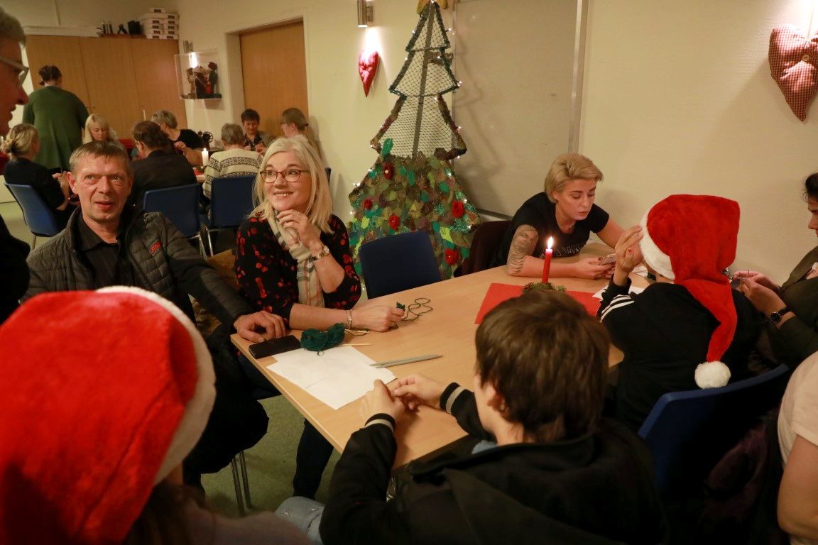 Tað vóru omanfyri 70 fólk og vitjaðu á bindiverkstovuni í kvøld, har tey eisini fingu ein rættiligan jóladuss aftur við. Eisini sang skúlakórið hugnaligar jólasangir aftur við kaffimunninum, kleynum og rísalamand.
