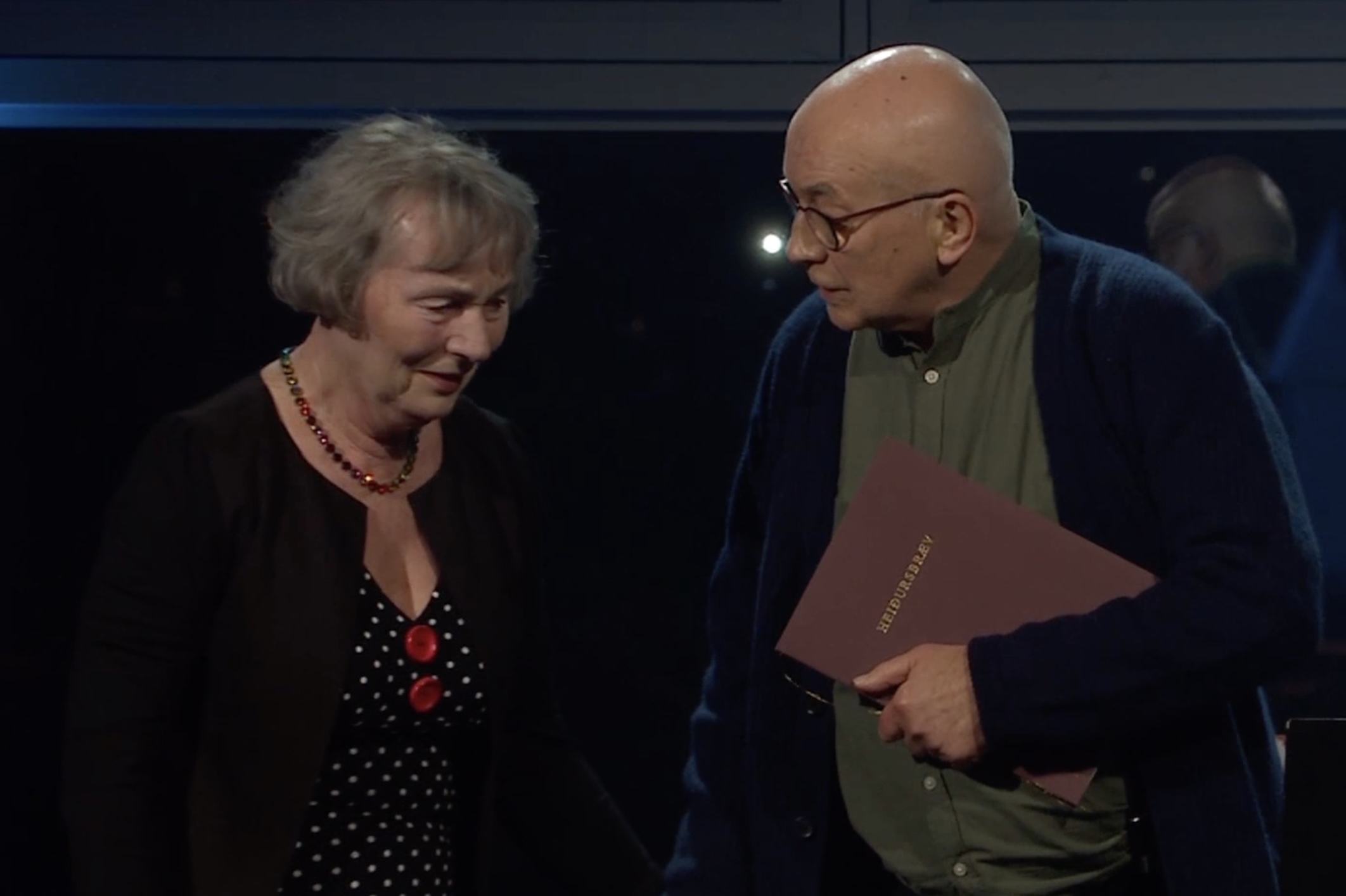 Sirið Stenberg, landsstýriskvinna í almanna- og mentamálum, hevur handað Biritu Mohr, sjónleikara, Serstøku virðisløn landsins fyri avrik síni.