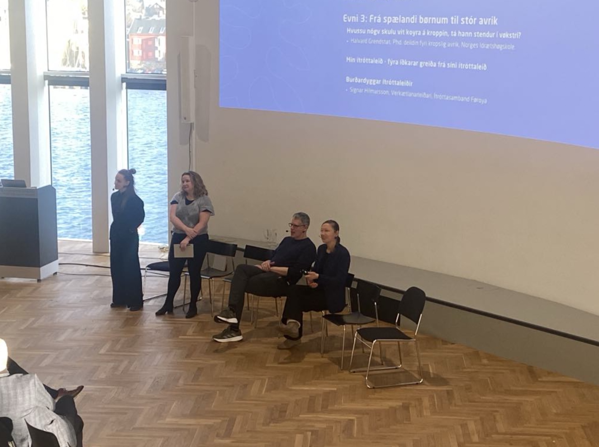 Fyri fullari Kongshøll var Louise T. Thomsen fyrst á pallinum. Hon greiddi frá verkætlanini Generation healthy kids. Eftir hana hoyrdu vit Báru Berghamar Danielsen tosa um FitFirst Suðuroy - rørsluvon børn.
