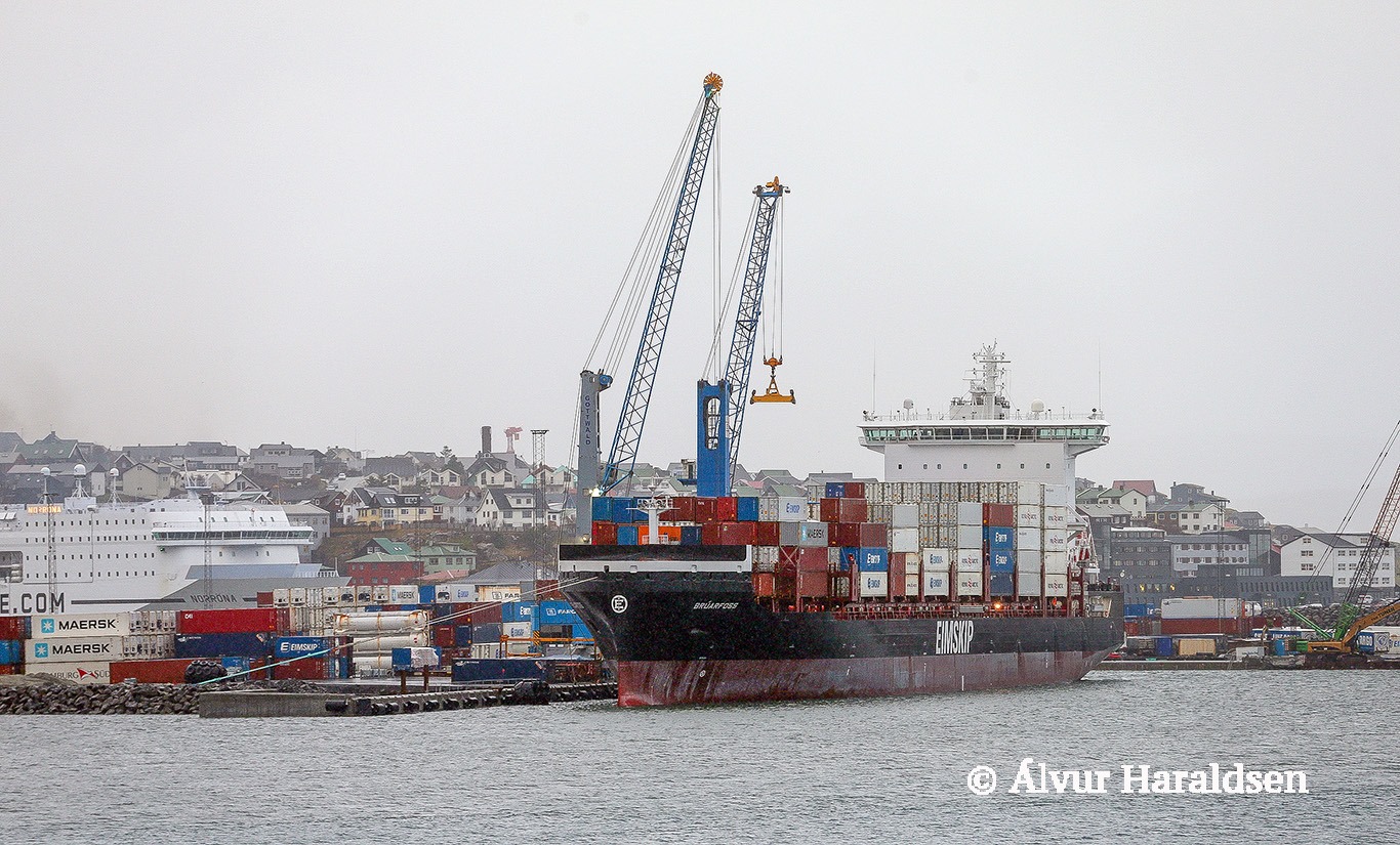 Brúarfoss, eitt skip á 2.150 TEU, hevur í morgun bíðað eftir, at Tukuma Arctica legði frá landi, so pláss var at leggja at við nýggja keikantin.
