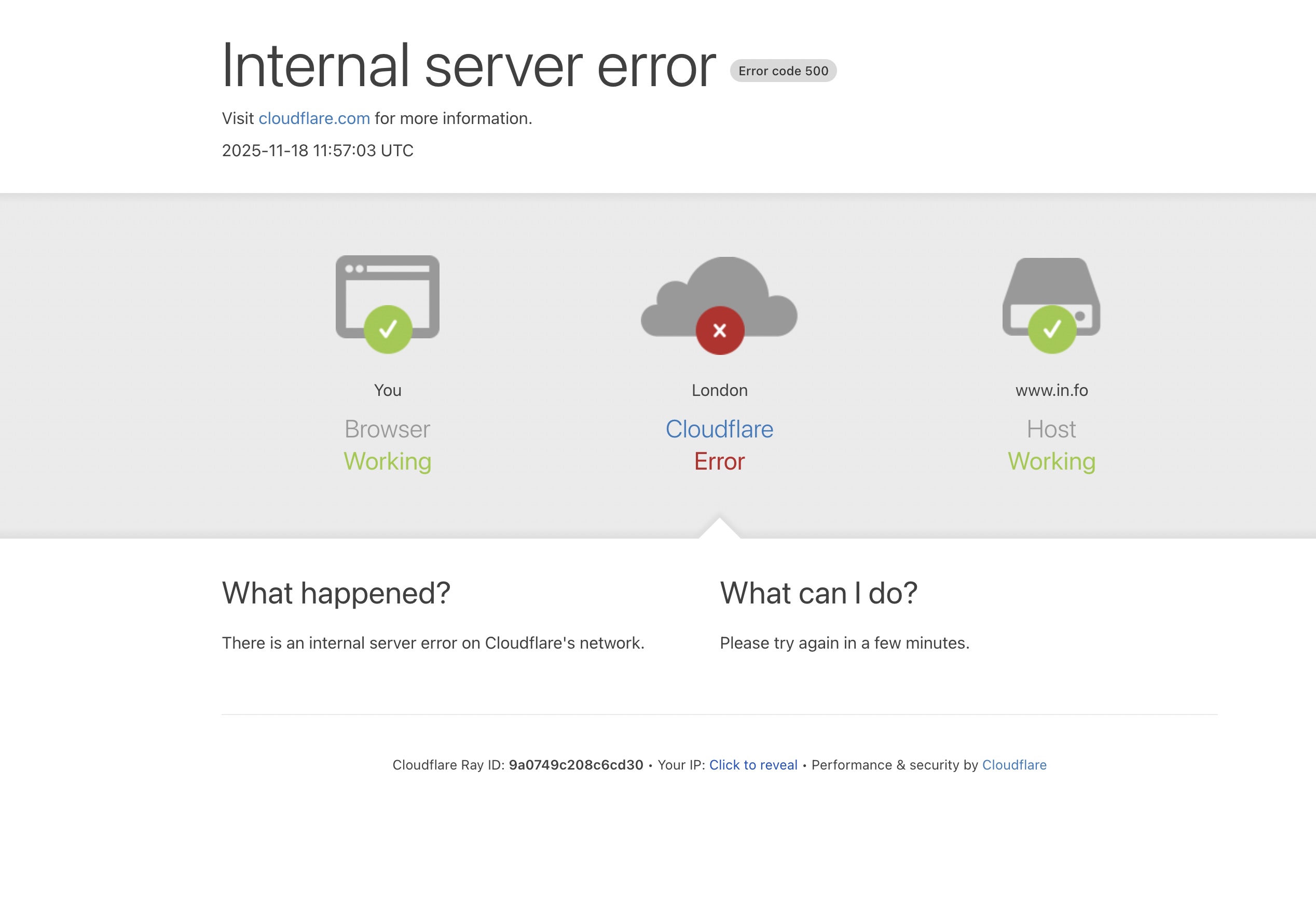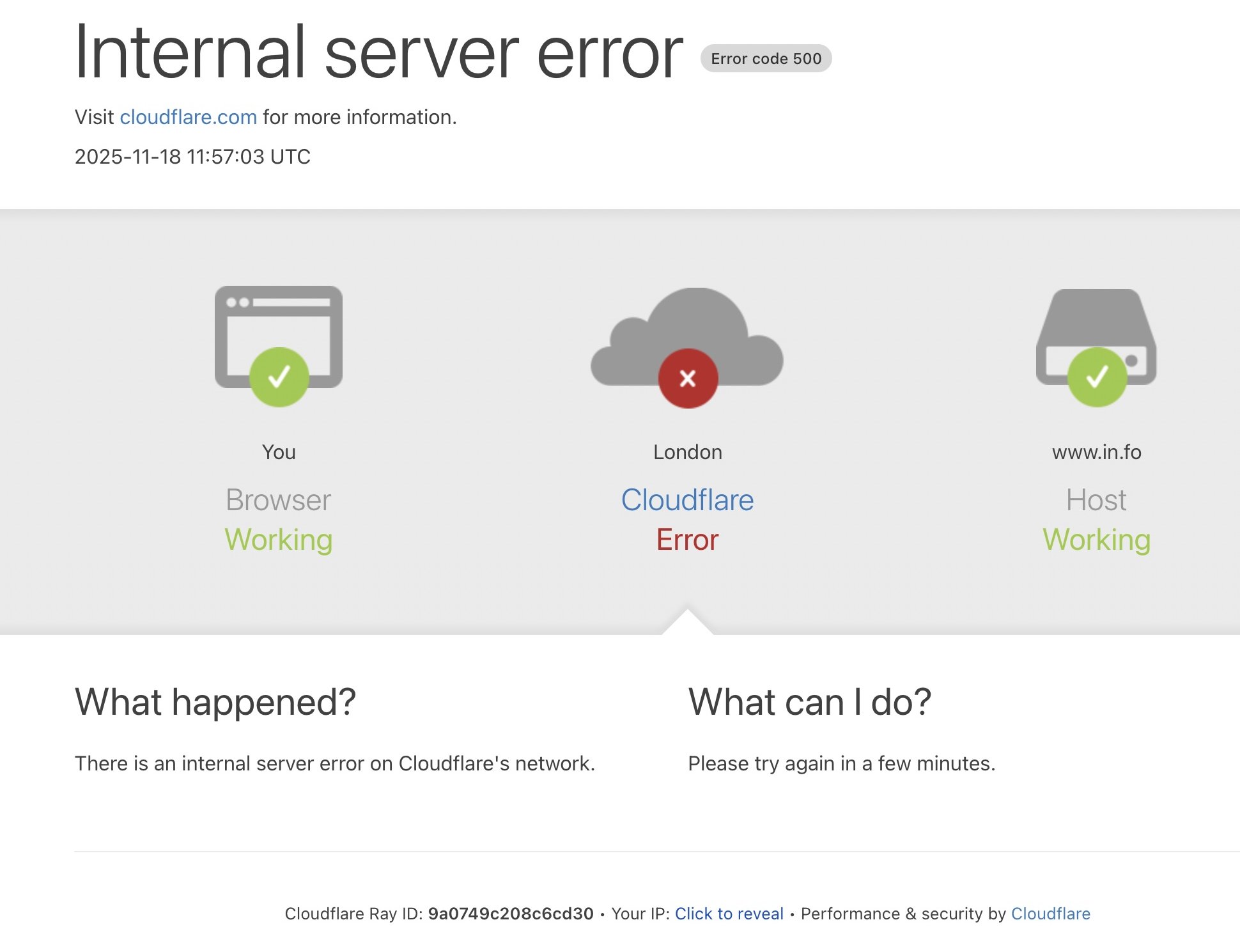 Á heimasíðuni skrivar Cloudflare, at talan er um innanhýsis tøkniligar trupulleikar.
