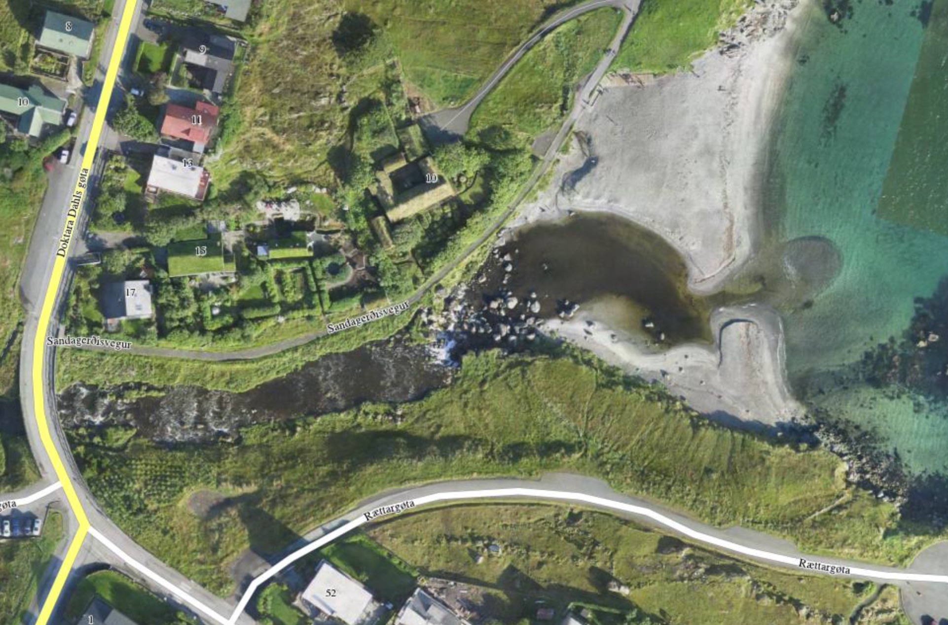 Ætlaða brúgvin og gøtusambandið liggur innan fyri forn- og náttúrufriðaða økið í Sandagerði, og skal ætlanin sostatt góðkennast av friðingarmyndugleikunum.