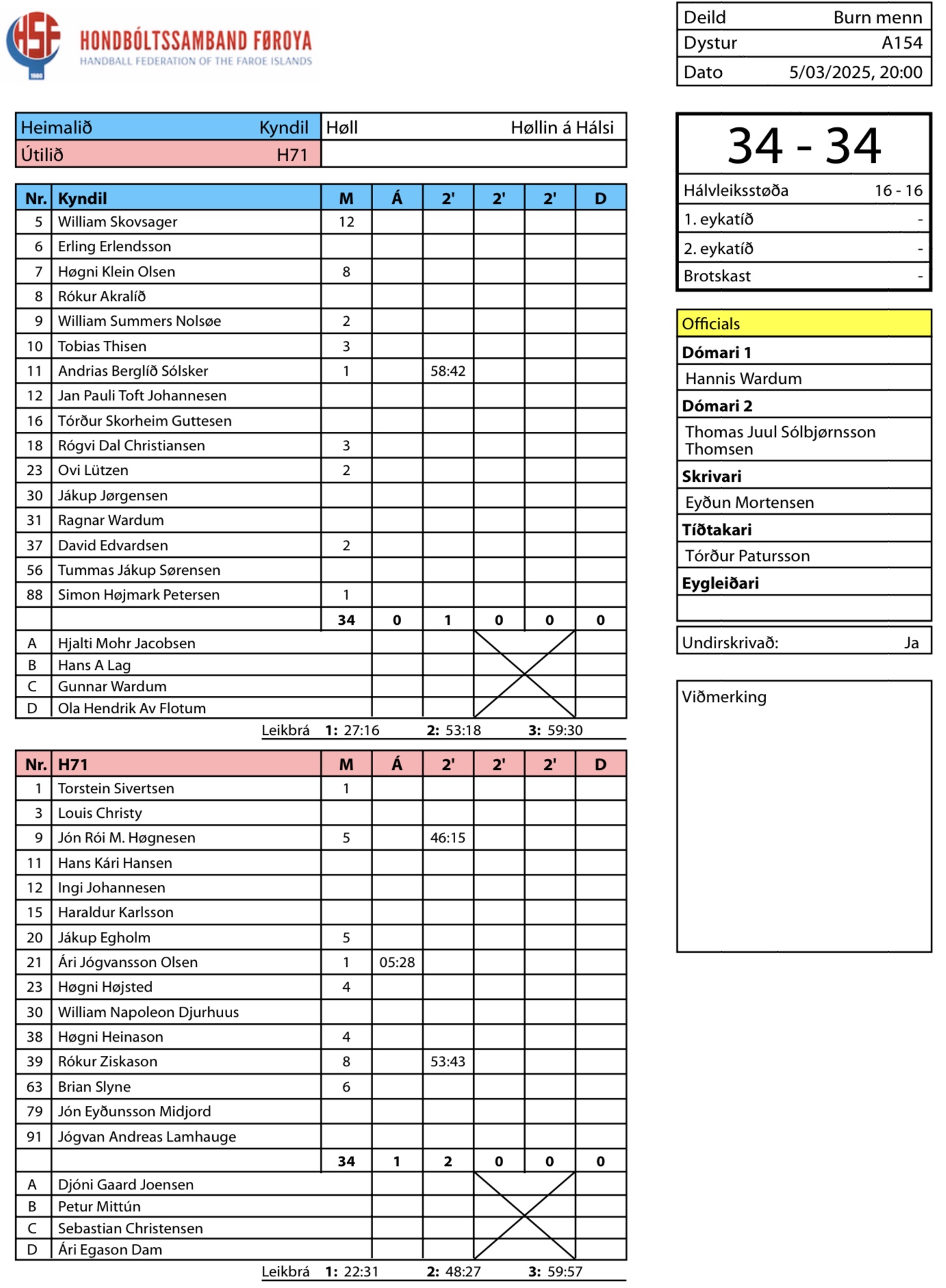 HER ber til frá HSF at síggja dómaraseðilin og støðuna: