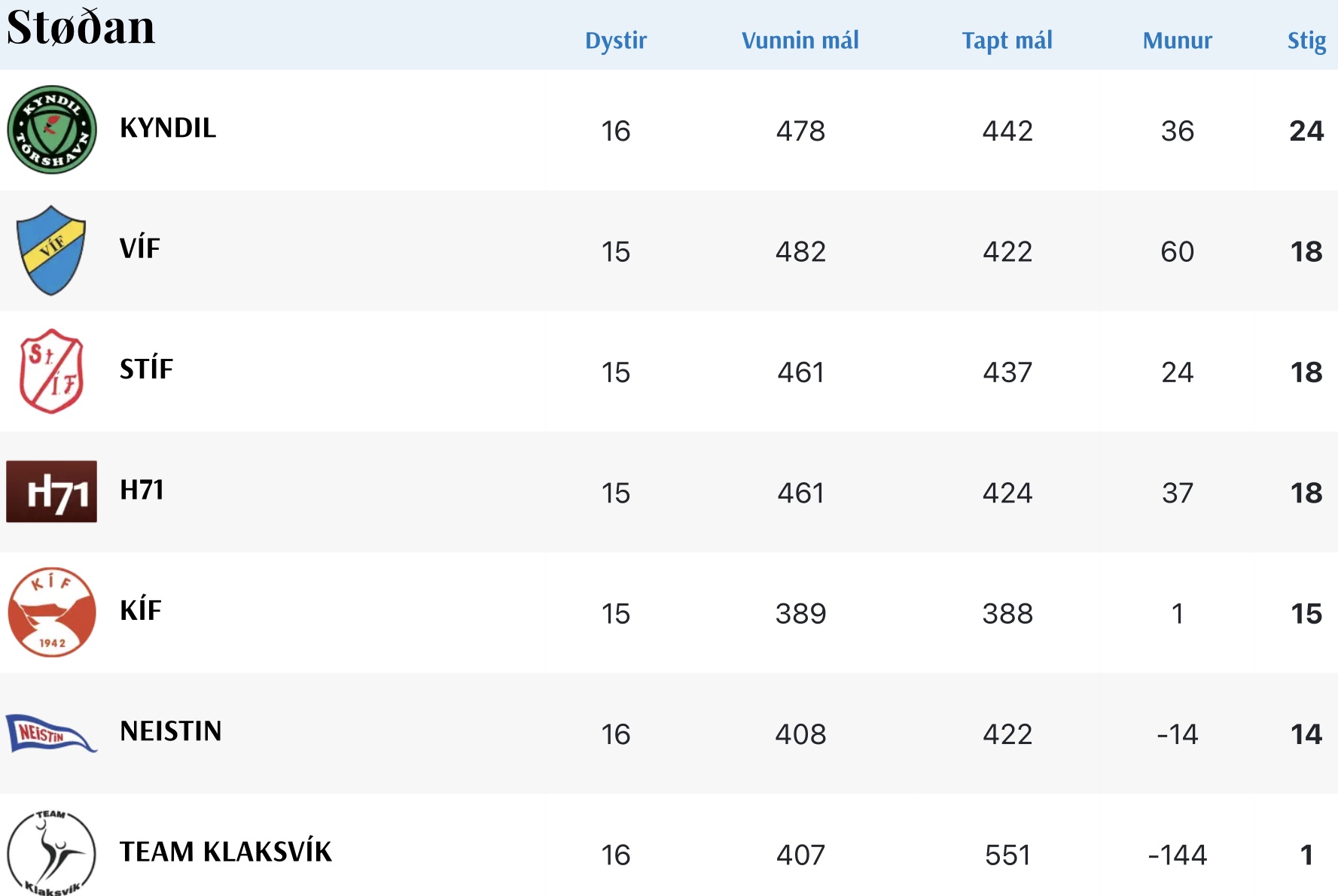 William Skovsager var við 12 málum stórskjútti hjá Kyndli. Toppskjútti hjá H71 við átta málum var Rókur Ziskason.