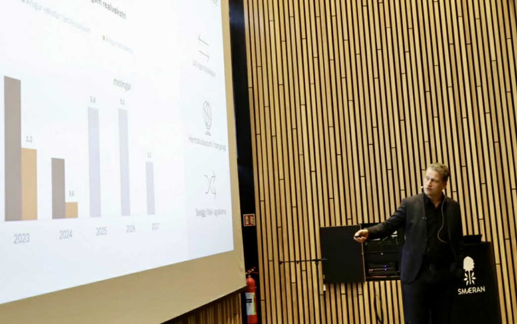 Fyri 2026 er vøksturin í BTÚ í leypandi prísum mettur at gerast 6,2%. Tað eru fyrst og fremst privata nýtslan og útflutningurin, sum toga vøksturin upp í 2026. Landskassin og kommunurnar hava framvegis hall, og neyðugt er at fremja umfatandi nýskipanir og sparingar. Eisini eigur politiski myndugleikin at taka avbjóðingina við manglandi bústøðum í álvara, tí ein týðandi fortreyt fyri at fáa fólki á støðast í Føroyum er, at tað er møguligt at fáa eitt býli.