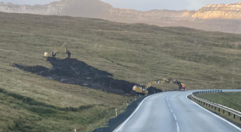 Og nú er so gongd komið á at gera vegin niðan til vindmyllulundina. Vegurin verður gjørdur frá landsvegnum og niðan í Porkerishagan. Tað er Articon, sum stendur fyri arbeiðinum at gera vegin fyri SEV. Vegurin verður umleið 1,5 km. langur.
