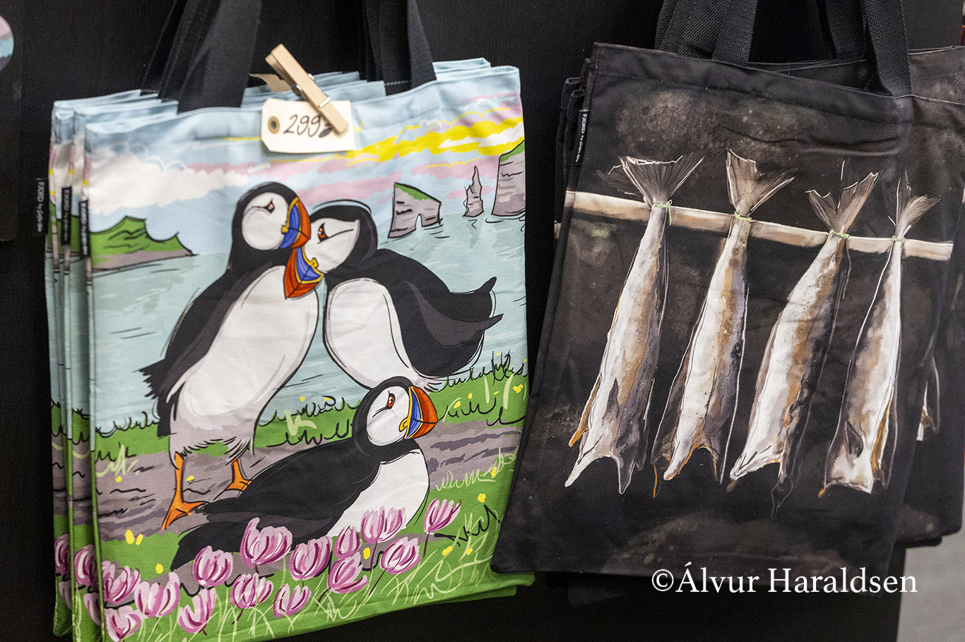 Síðani var farið í gongd við at flyta tekningarnar á taskur, viskustykkir, plakatir, skriviblokkar og annað. Í august fór fyrsta bíleggingin við íslendskum vørum avstað.